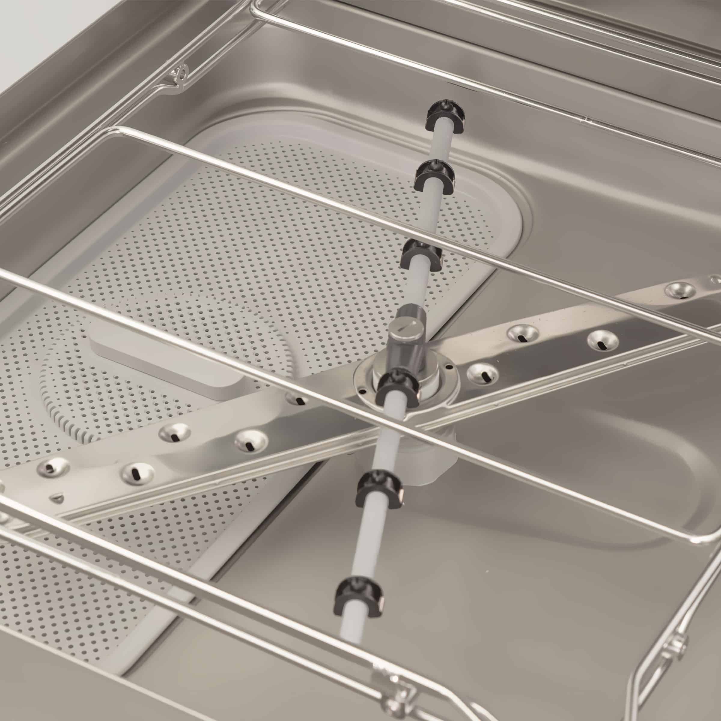 De RVS Asber Basic-line doorschuifvaatwasser is speciaal ontworpen voor de professionele horeca. Deze krachtige vaatwasmachine beschikt over drie verschillende wasprogramma’s, een capaciteit tot 40 korven per uur en handige functies als een elektronisch bedieningspaneel, temperatuurweergave en veiligheidsthermostaat. Dankzij de ingebouwde doseerpomp voor reinigingsmiddel, afvoerpomp en anti-terugslagklep is optimale hygiëne gegarandeerd. De machine is volledig uitgevoerd in roestvrij staal, heeft verstelbare poten en wordt compleet geleverd met bordenkorf, universele korf en bestekkorf. Geschikt voor 400V-aansluiting en inclusief 12 maanden garantie.