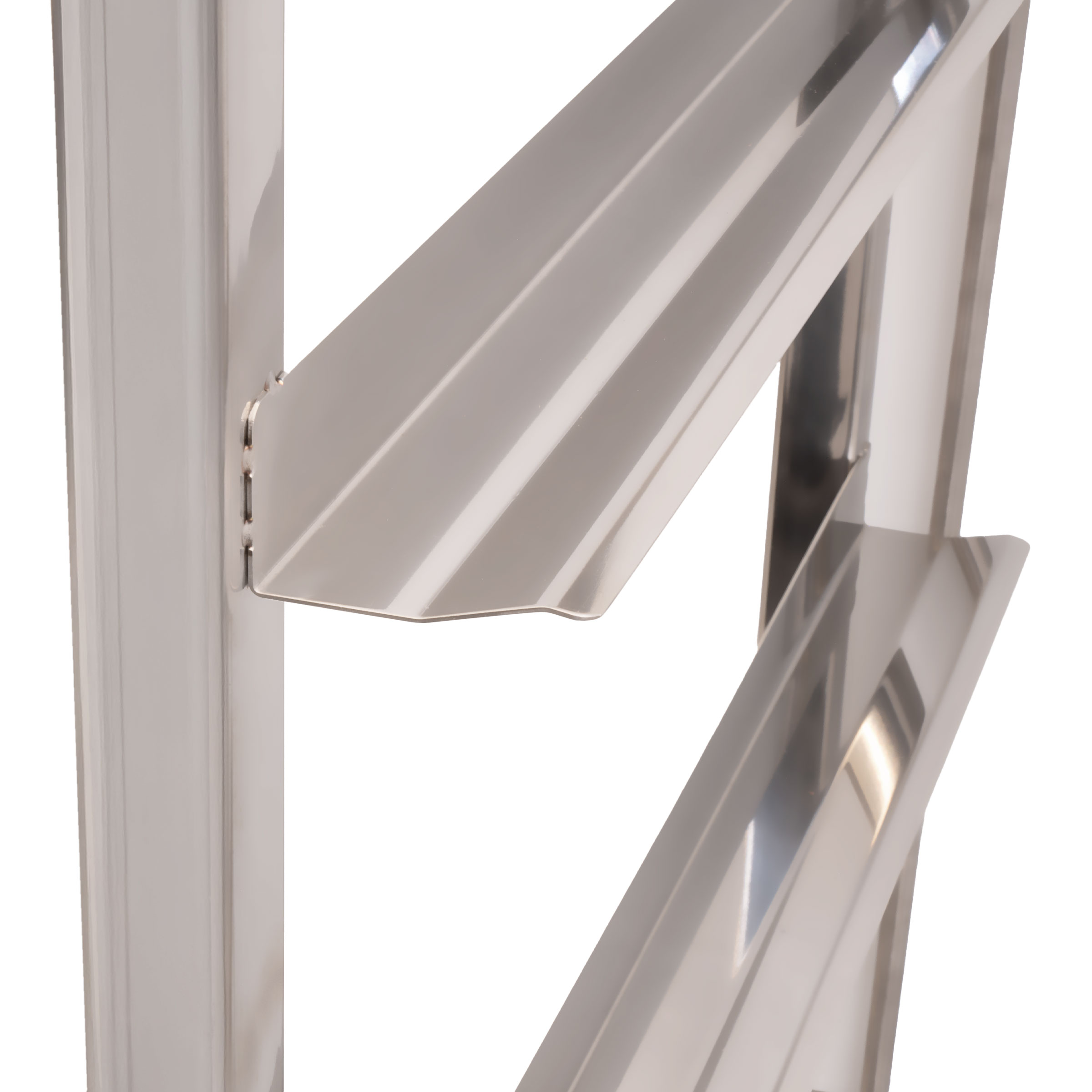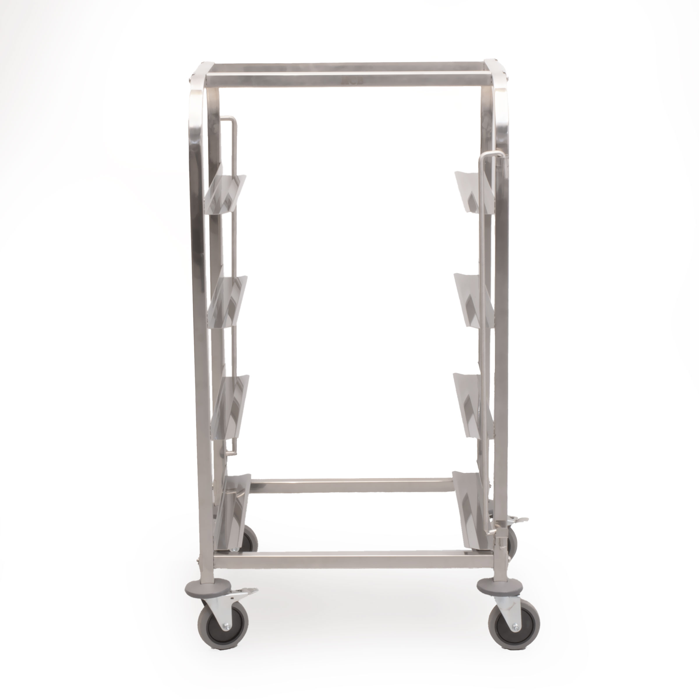 Fabriqué en acier inoxydable de haute qualité, ce chariot à étagères peut accueillir jusqu’à 4 caisses de lavage de 50 x 50 cm. La distance entre les étagères est de 20 cm, ce qui garantit une capacité de stockage maximale.