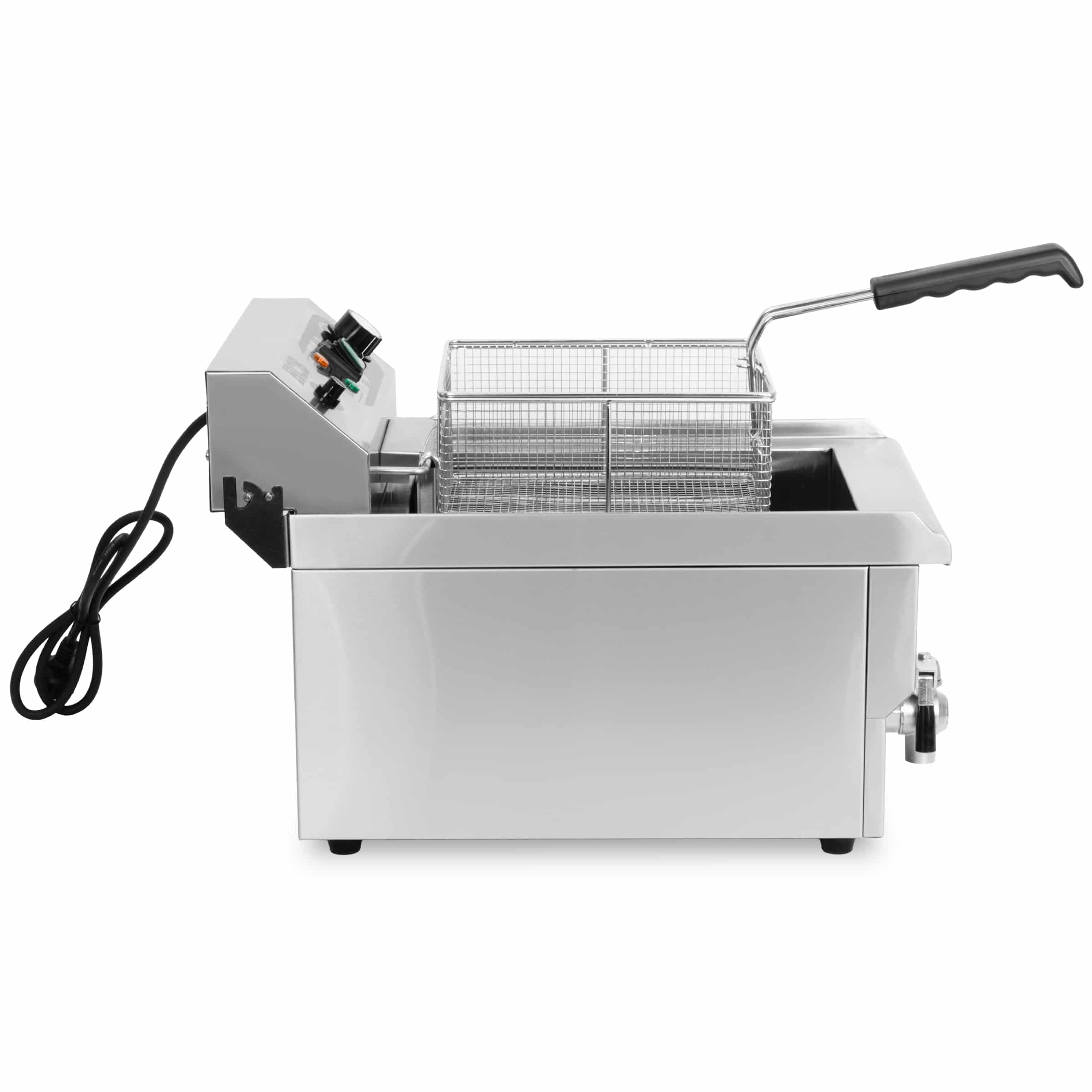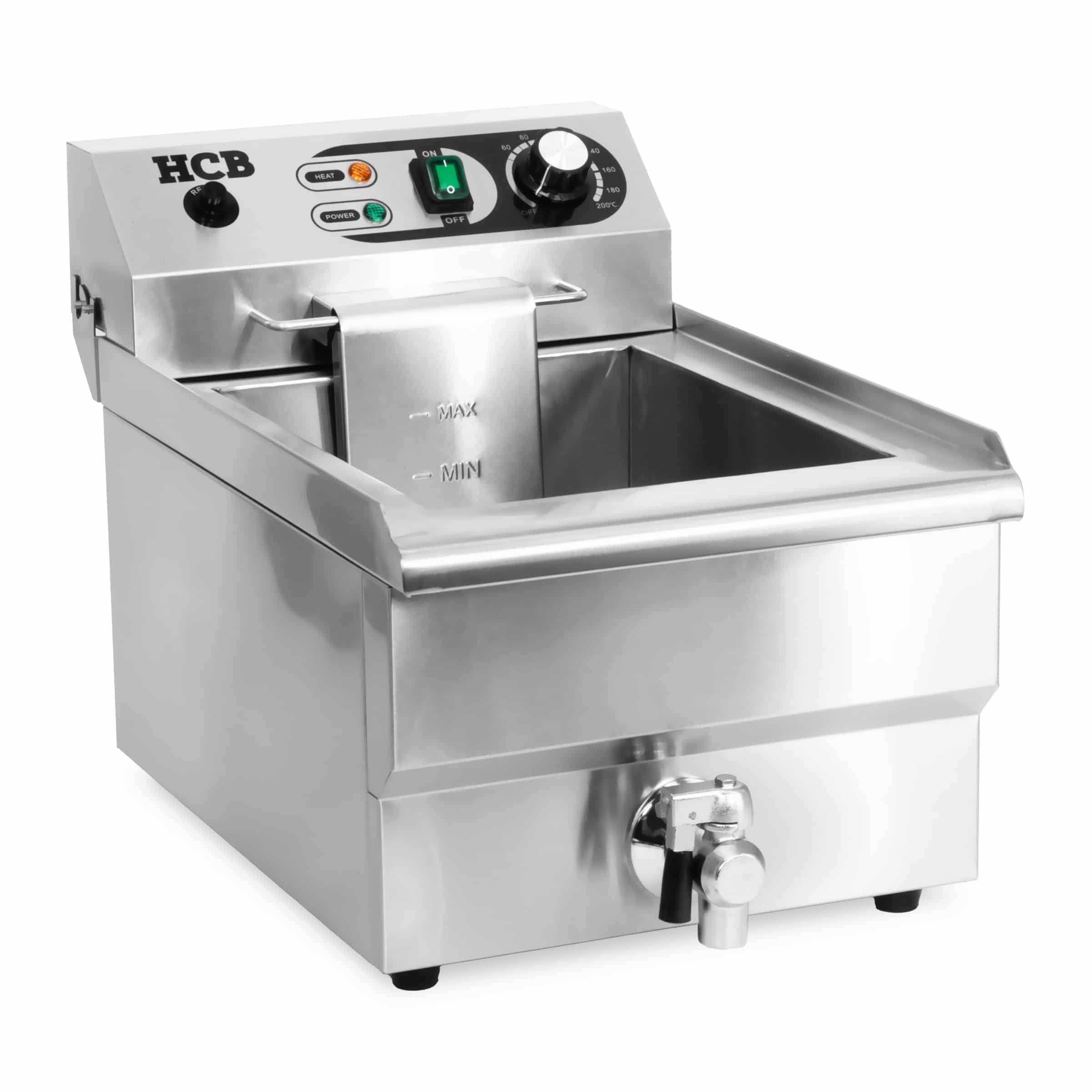 Cette friteuse d’une capacité de 16 litres est parfaite pour la cuisine professionnelle. Idéale pour frire de grandes quantités en une seule fois, la friteuse est parfaite pour frire différents types d’aliments tels que des frites fraîches, des légumes, des snacks. Le nettoyage est facile, toutes les pièces sont faciles à retirer et, comme tout est en acier inoxydable, faciles à nettoyer.