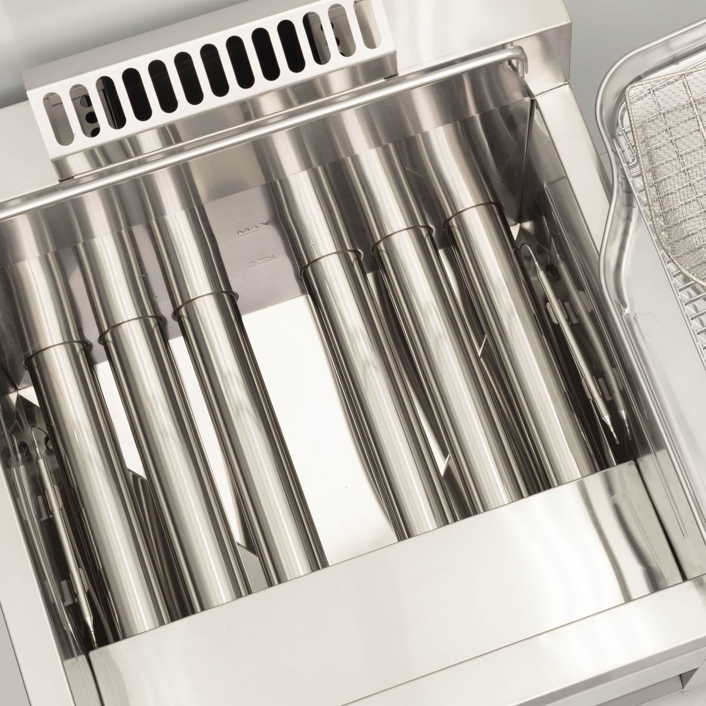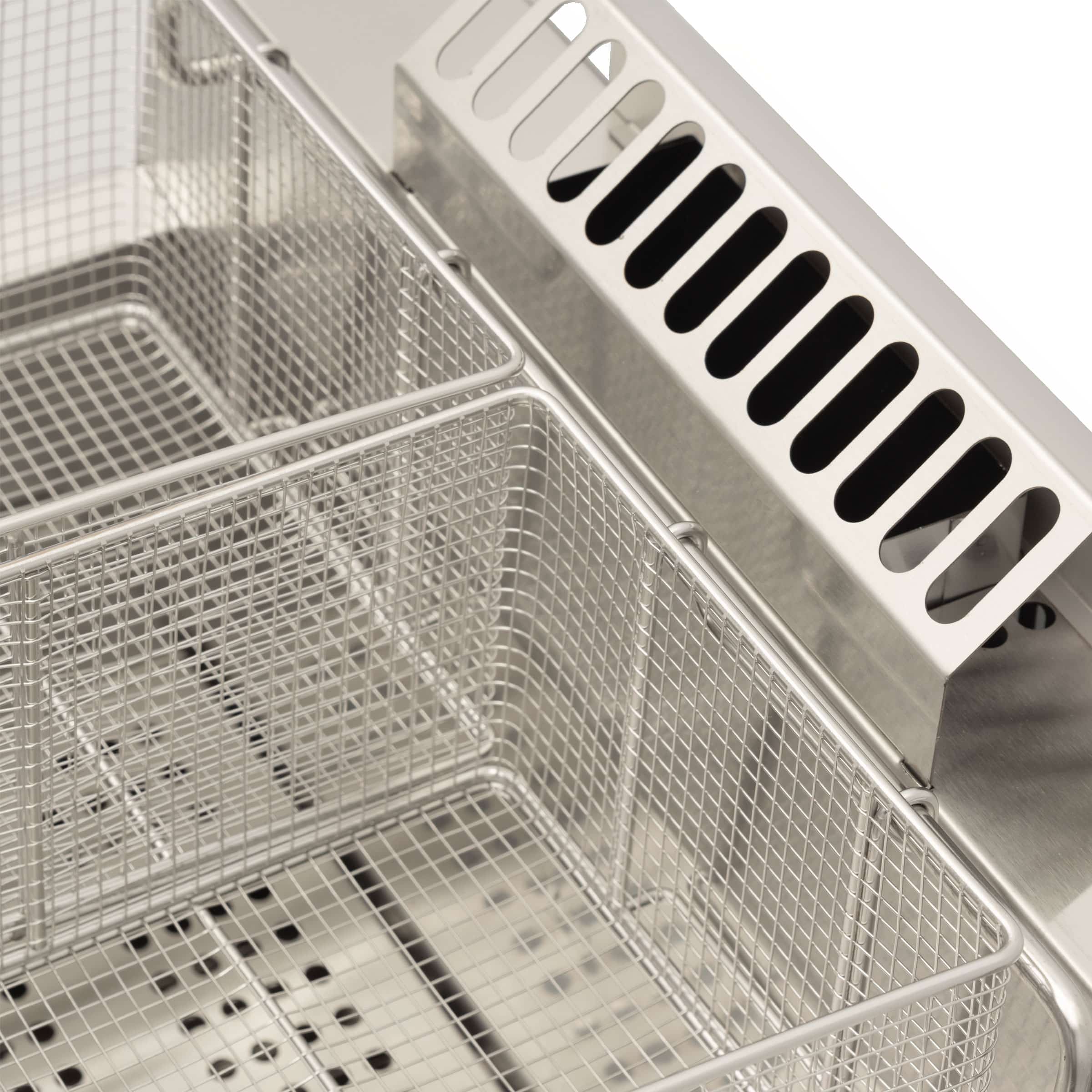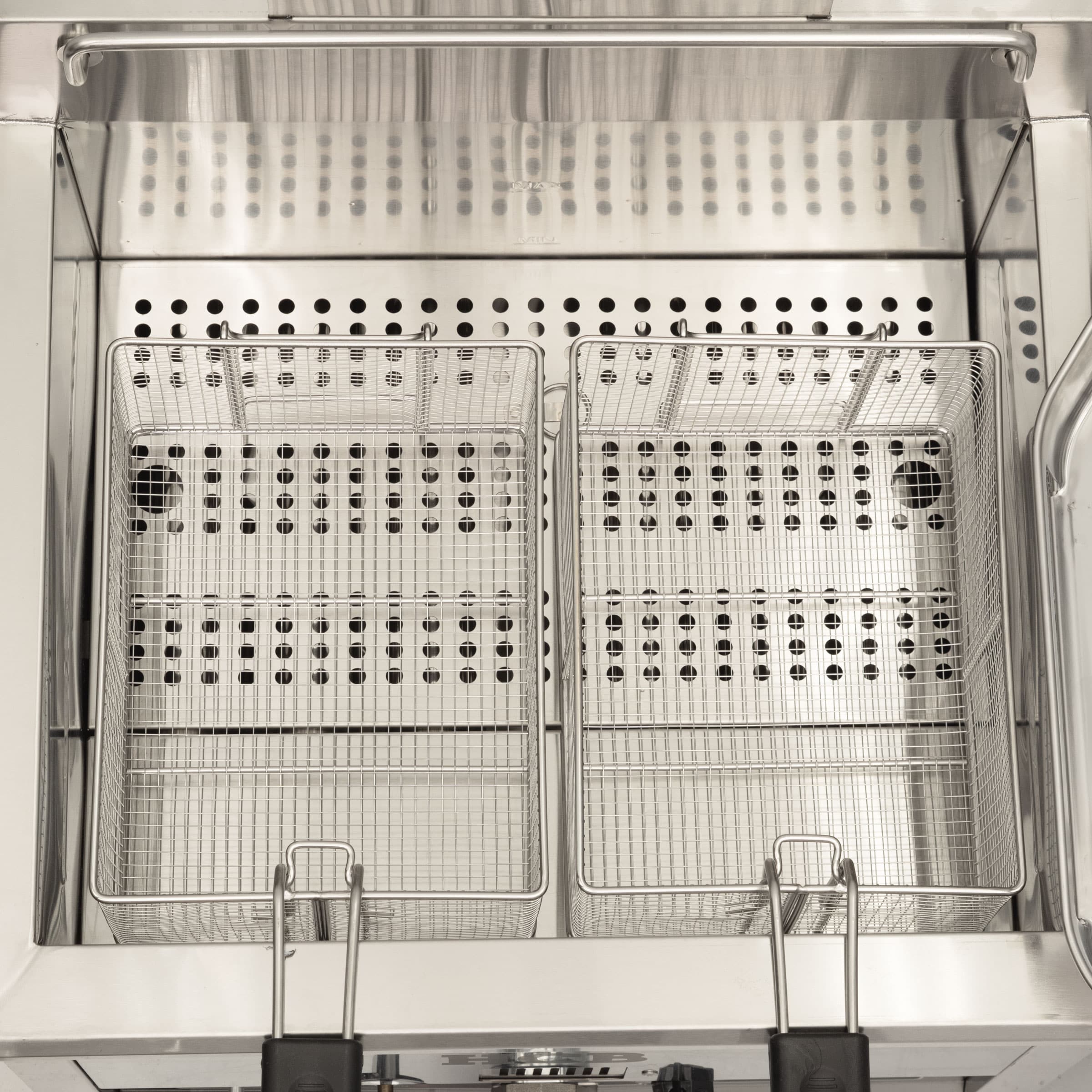 La friteuse est livrée avec deux paniers de friture, ce qui vous permet de préparer facilement plusieurs produits en même temps. Grâce à l’utilisation du gaz naturel, la friteuse est également très économe en énergie.