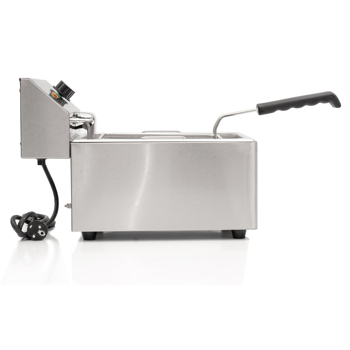 Cette friteuse d’une capacité de 5,5 litres est parfaite pour la cuisine professionnelle. Idéale pour frire de plus petites quantités à la fois, mais la qualité ne compromet pas sa taille. La friteuse est parfaite pour frire différents types d’aliments tels que des frites fraîches, des légumes, des snacks. Le nettoyage est facile, toutes les pièces sont faciles à enlever et comme tout est en acier inoxydable, c’est facile à nettoyer.