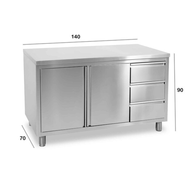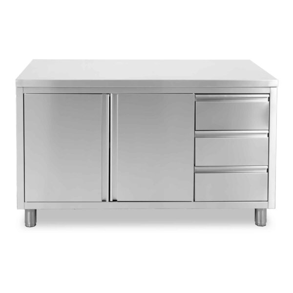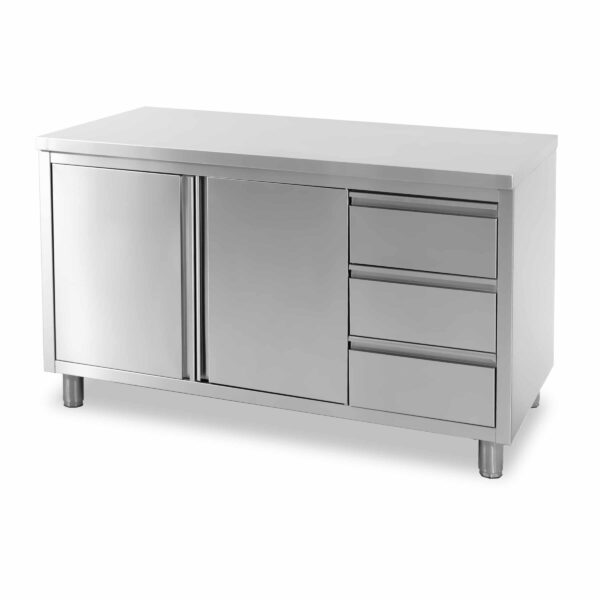 HCB Armoire de travail – porte pliante – 3 tiroirs – 140 cm – inox