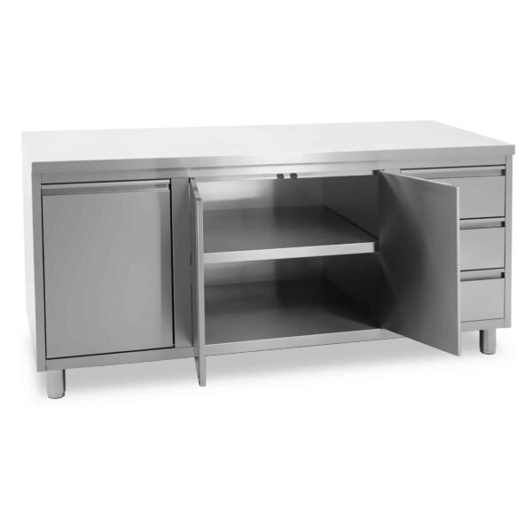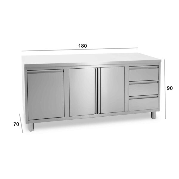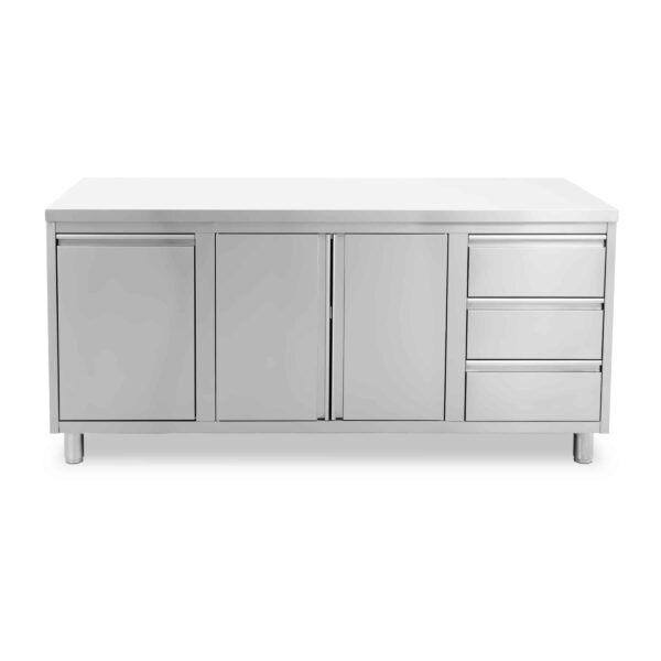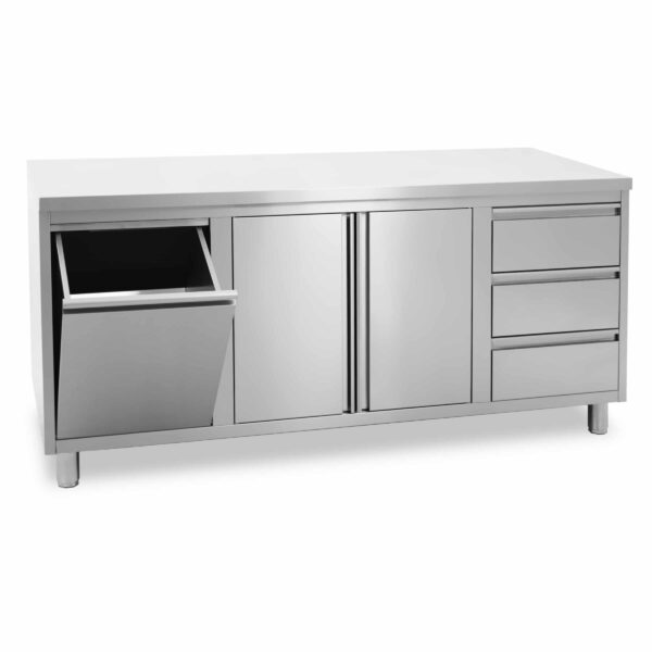 HCB Armoire de travail – porte pliante – 3 tiroirs – poubelle – 180 cm – inox