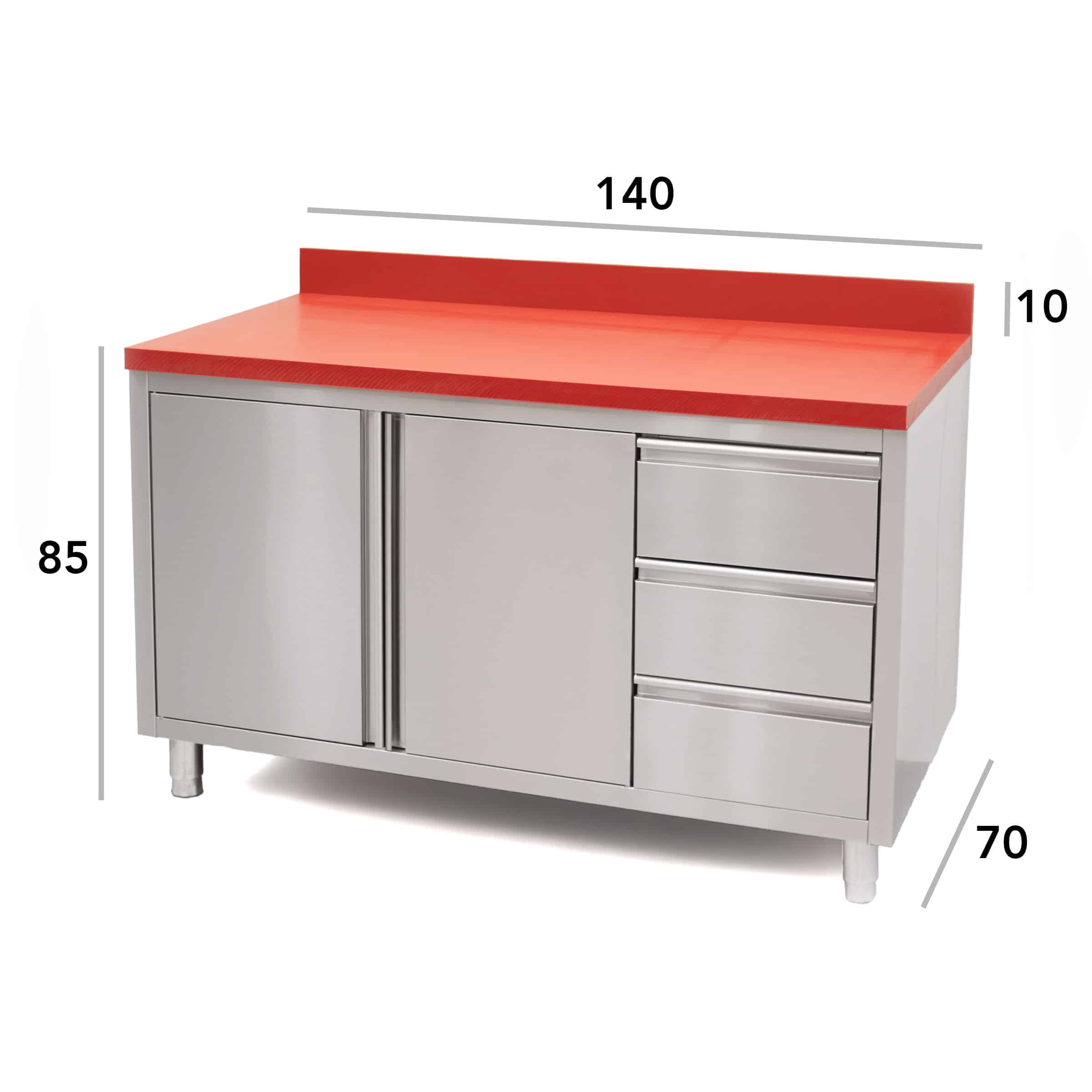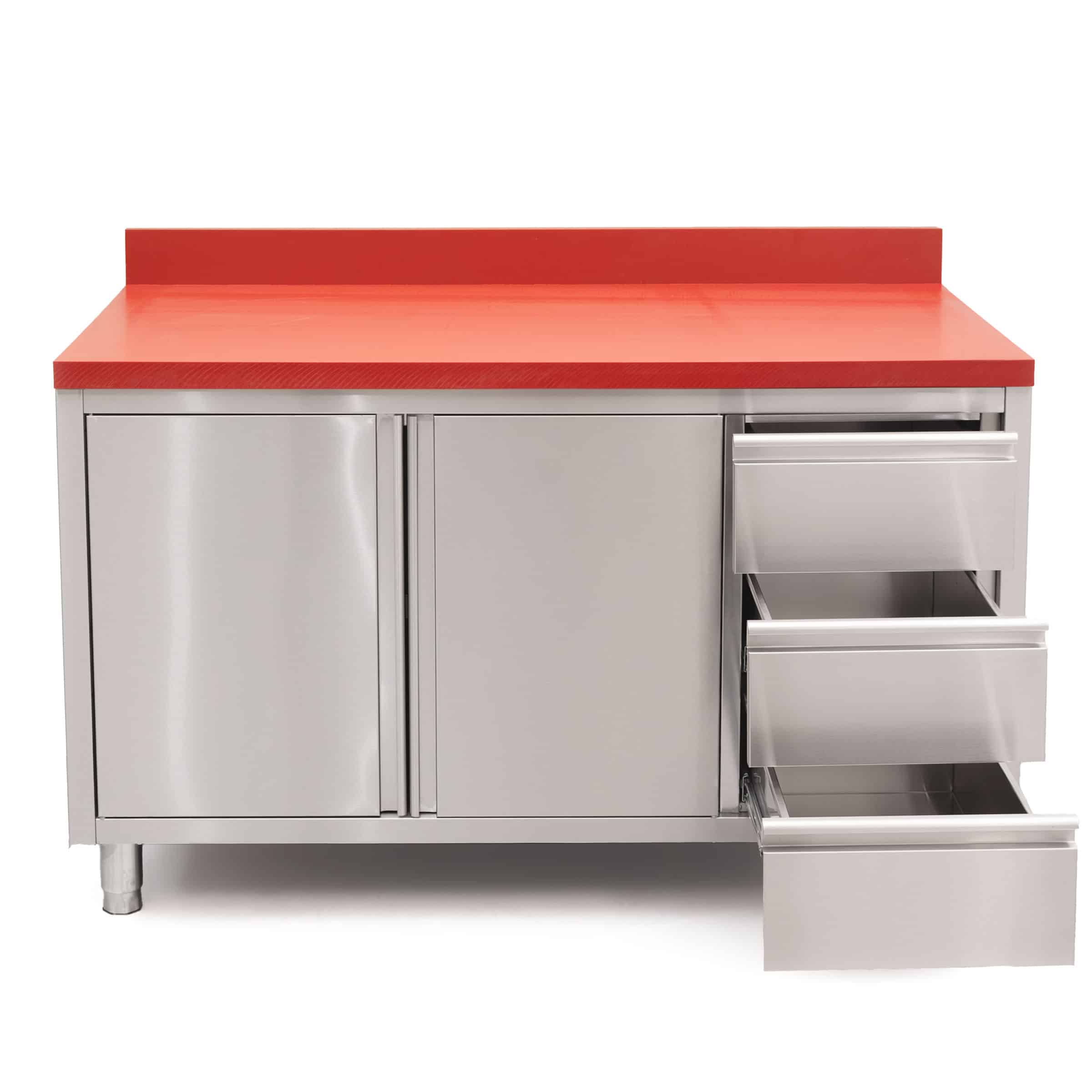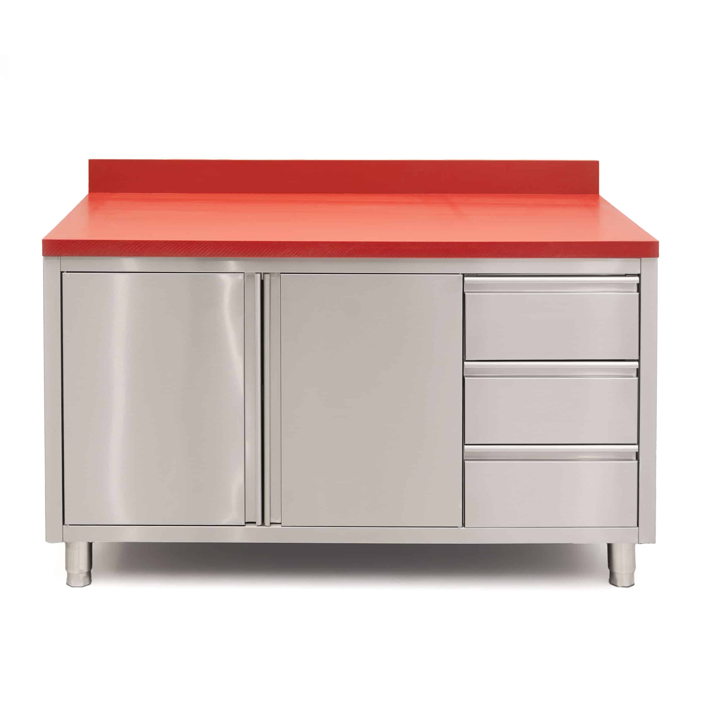 HCB Armoire de travail – table de découpe – portes pliantes – tiroirs – 140 cm – inox – Polyéthylène