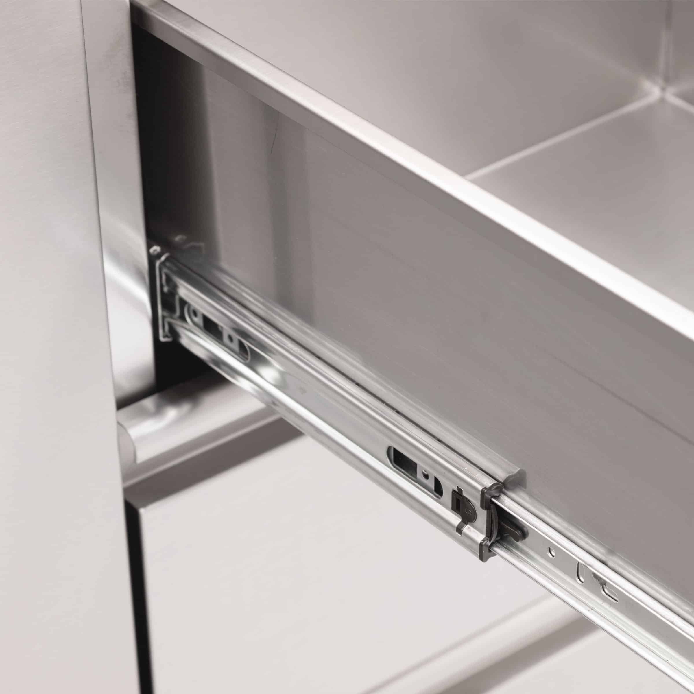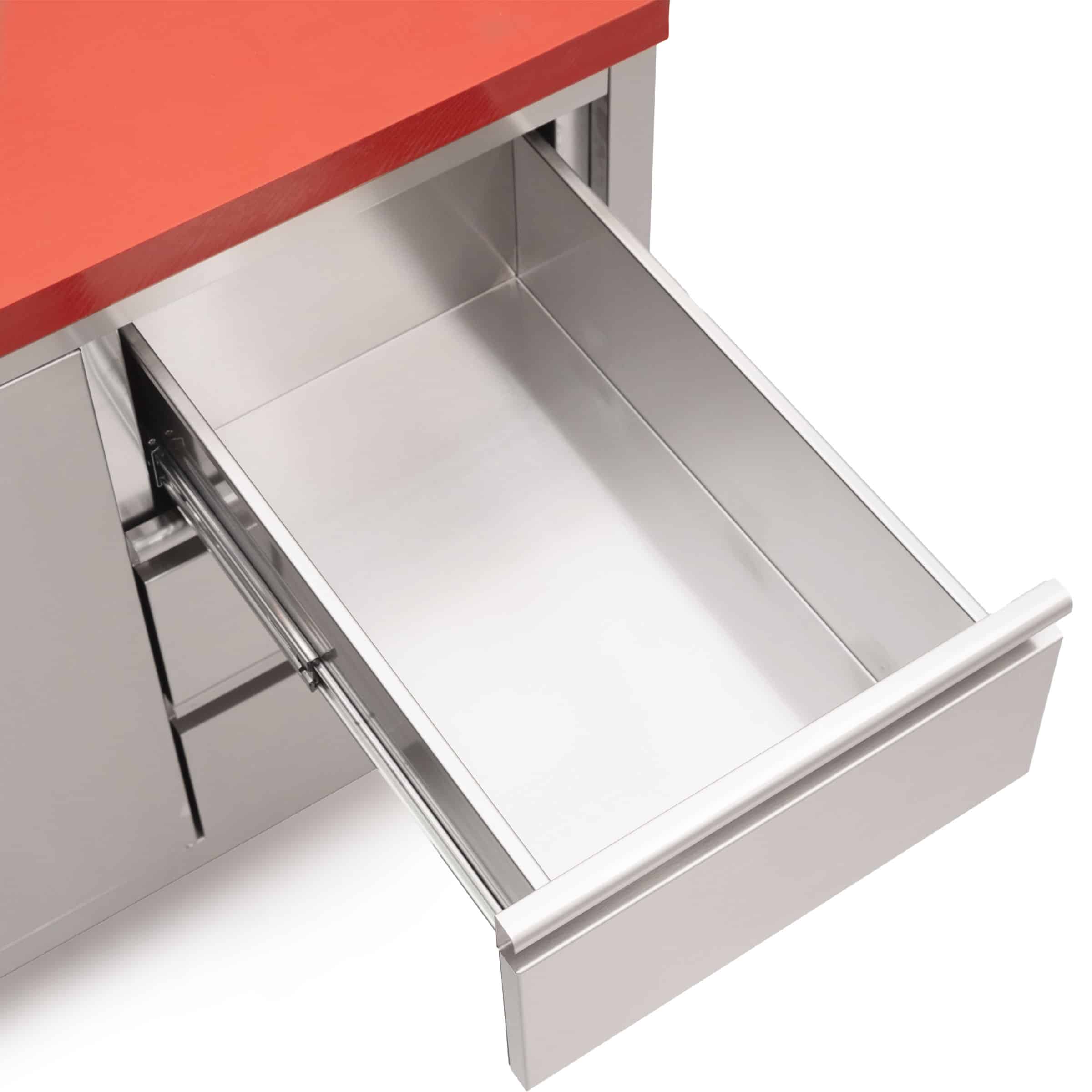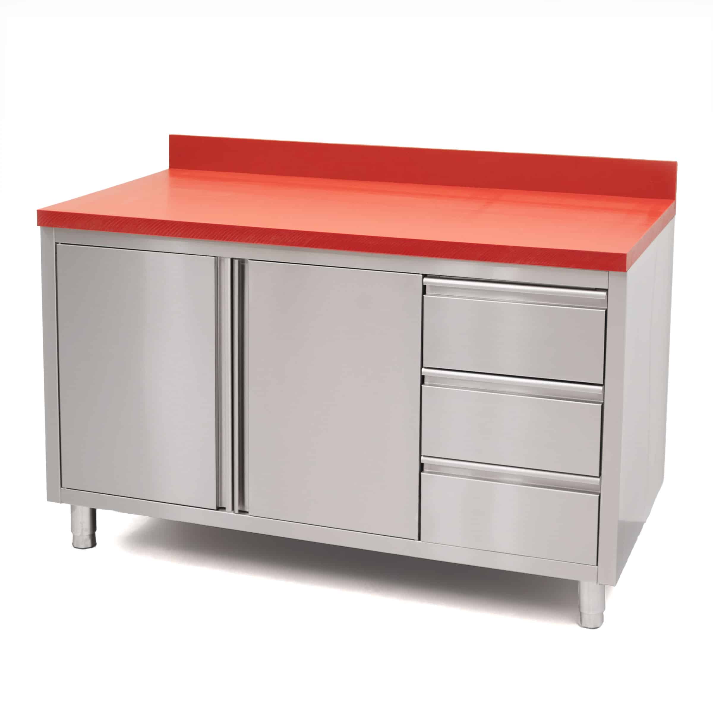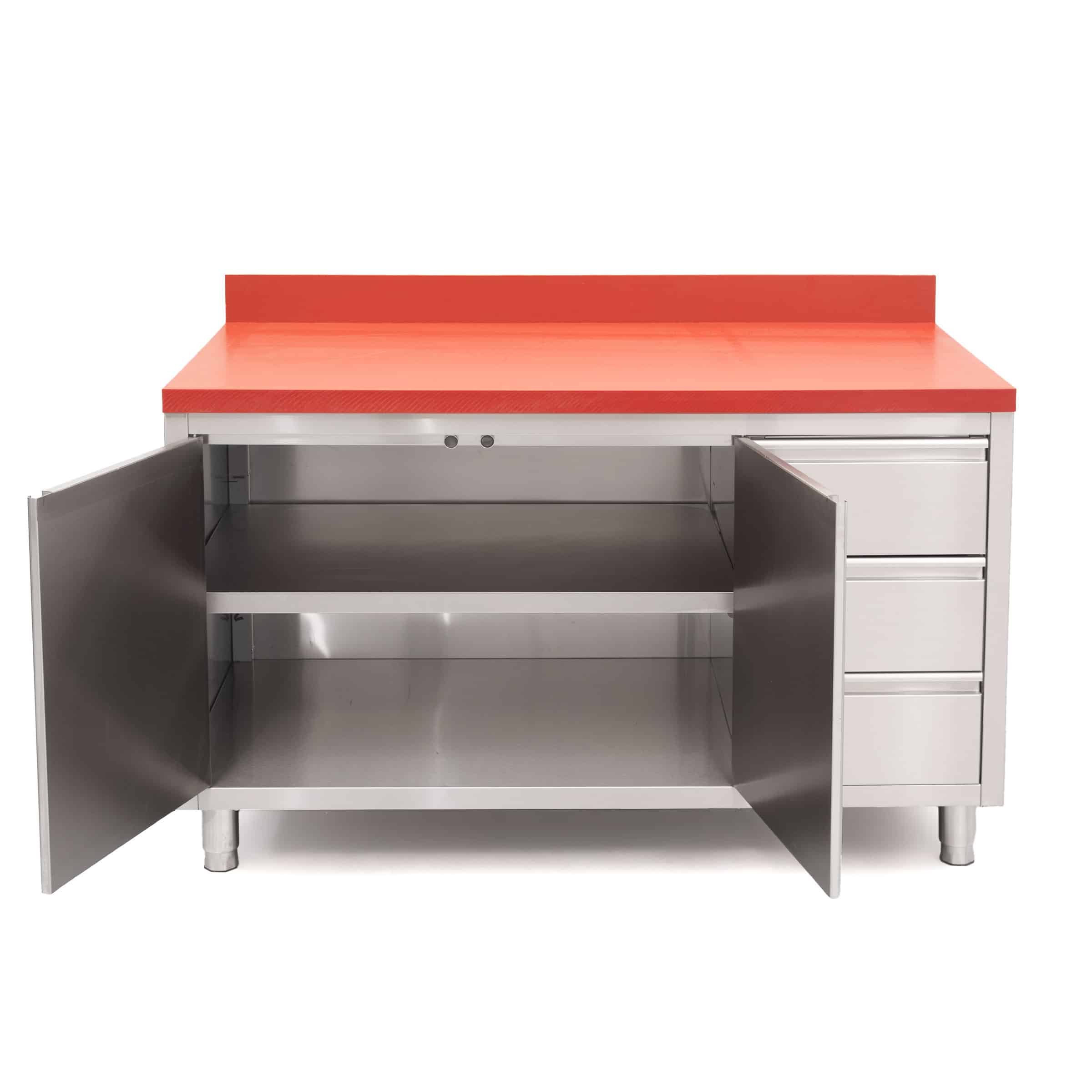 HCB Armoire de travail – table de découpe – portes pliantes – tiroirs – 140 cm – inox – Polyéthylène