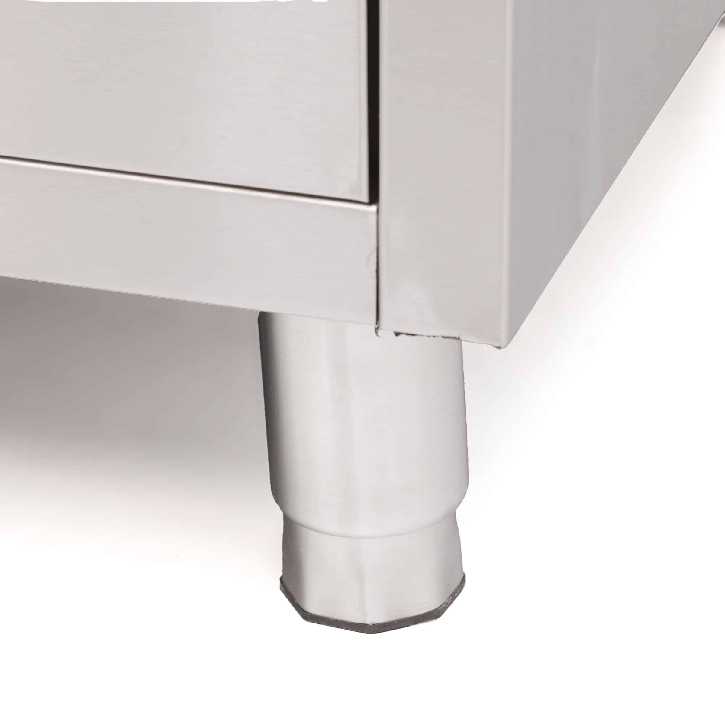 Pour travailler en toute sécurité, de manière optimale et efficace dans votre cuisine professionnelle, les armoires de travail en acier inoxydable sont idéales. Équipée d’un cadre en acier inoxydable très solide, de pieds robustes et de coins bien finis, cette armoire de travail de la marque HCB est donc le choix idéal ! L’armoire de travail convient parfaitement à la préparation des aliments et, grâce à son plan de travail en polyéthylène, son utilisation est sûre et hygiénique. En outre, grâce à sa robustesse et à sa capacité de charge, la table permet également de poser des équipements de cuisine.