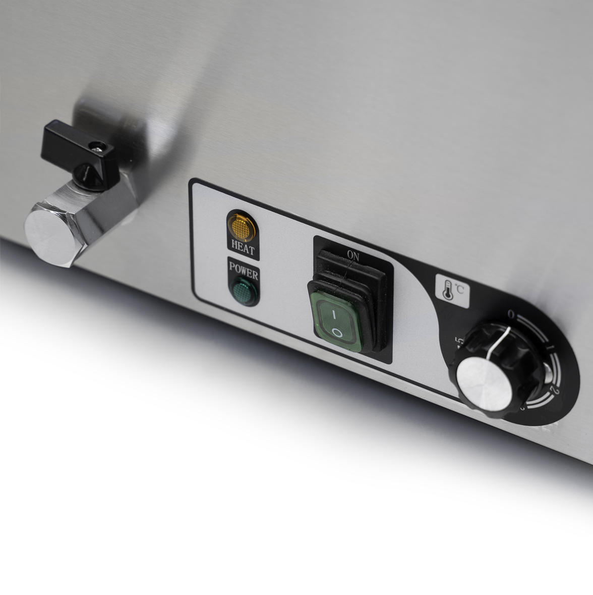 Le Bain Marie est équipé d’un robinet de vidange pratique, qui permet d’évacuer facilement l’eau excédentaire et de garder l’appareil propre. Le robinet de vidange est situé à l’avant de l’appareil, ce qui permet de l’atteindre et de le vider facilement.