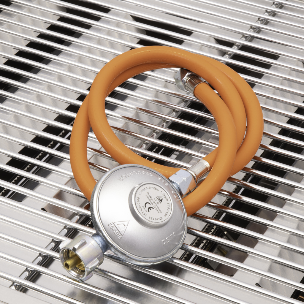 Découvrez le barbecue professionnel en acier inoxydable HCB, conçu pour les amateurs de grillades ! Doté de 2 brûleurs puissants pour un chauffage homogène et d’un allumage piézo pratique pour un démarrage rapide, ce barbecue est prêt à l’emploi. Équipé d’une grille, d’un bac de récupération, d’un tuyau de gaz et d’un régulateur de pression, il offre tout ce dont vous avez besoin pour faire des grillades. Avec sa puissance de 10 kW et son fonctionnement au gaz propane, ce barbecue vous garantit de délicieuses grillades avec facilité et précision.