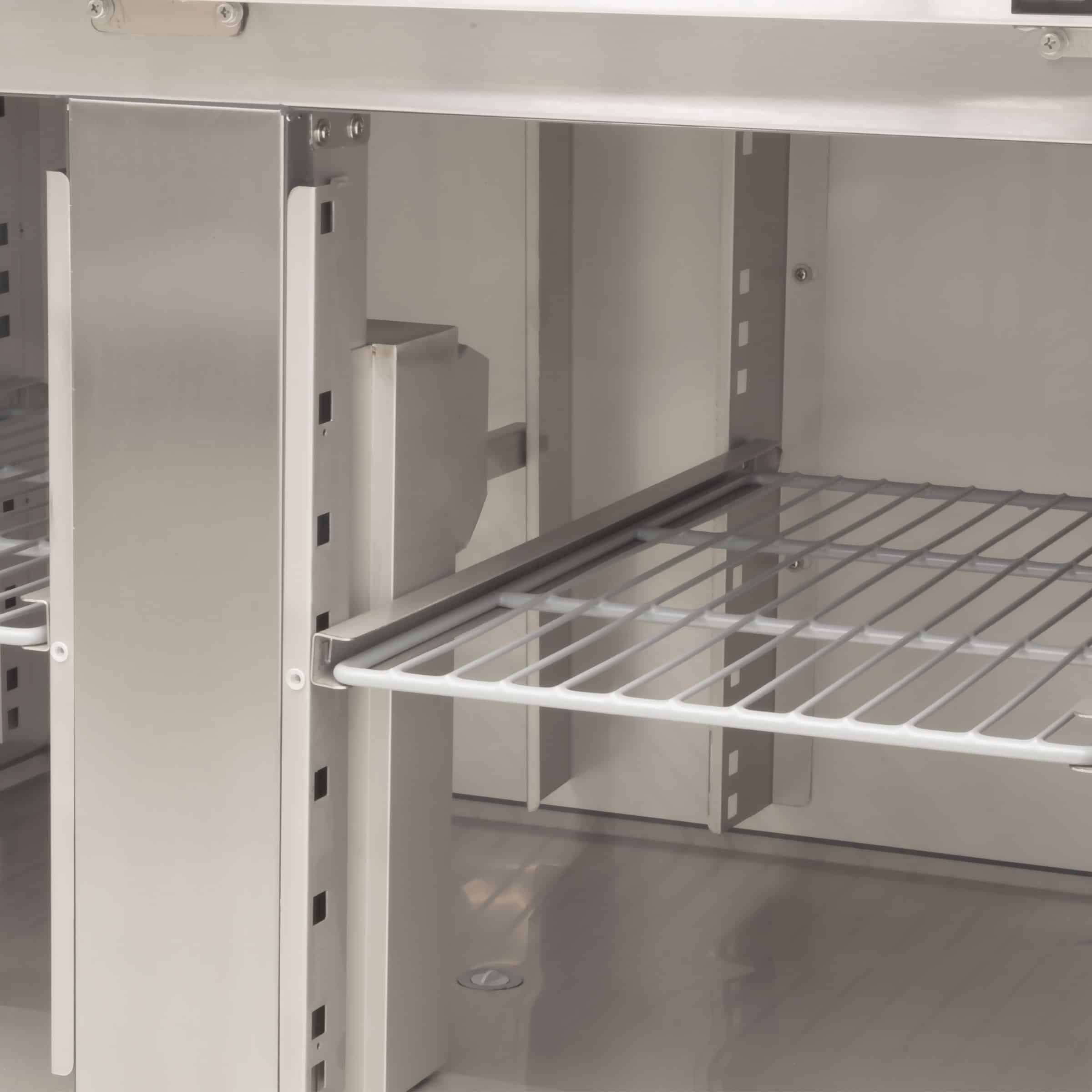 Pouvant accueillir des bacs gastronormes de 1/1, cet établi réfrigéré offre suffisamment d’espace de stockage pour tous vos ingrédients, sauces et vinaigrettes.