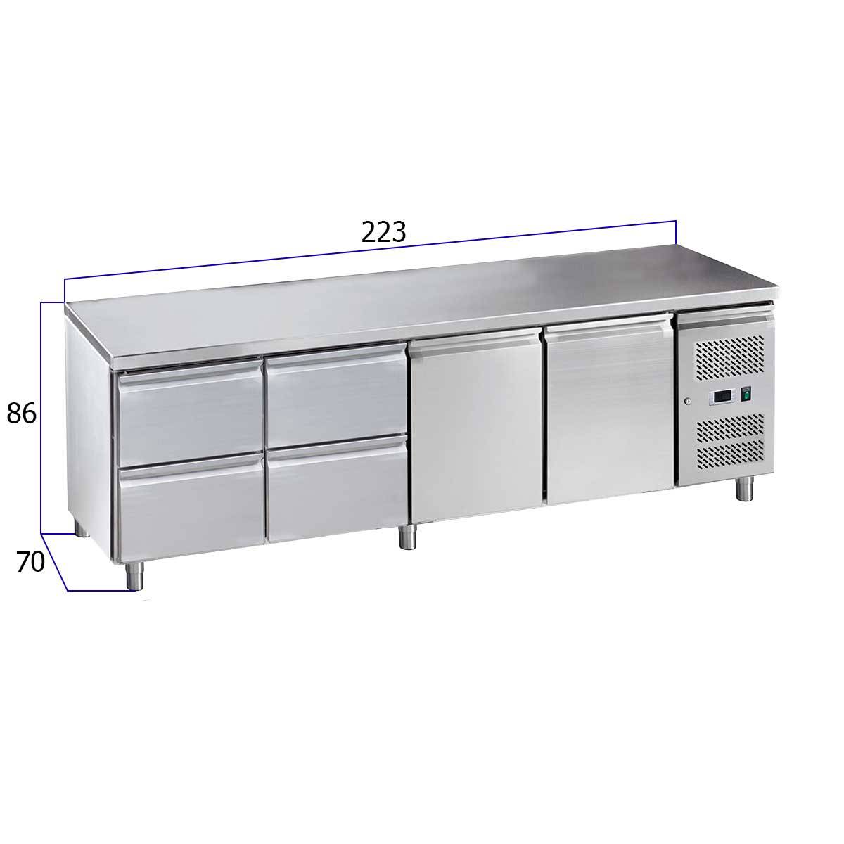 HCB Basic-line Etabli réfrigéré – 4 tiroirs – 2 portes – 223 cm – 230V – inox