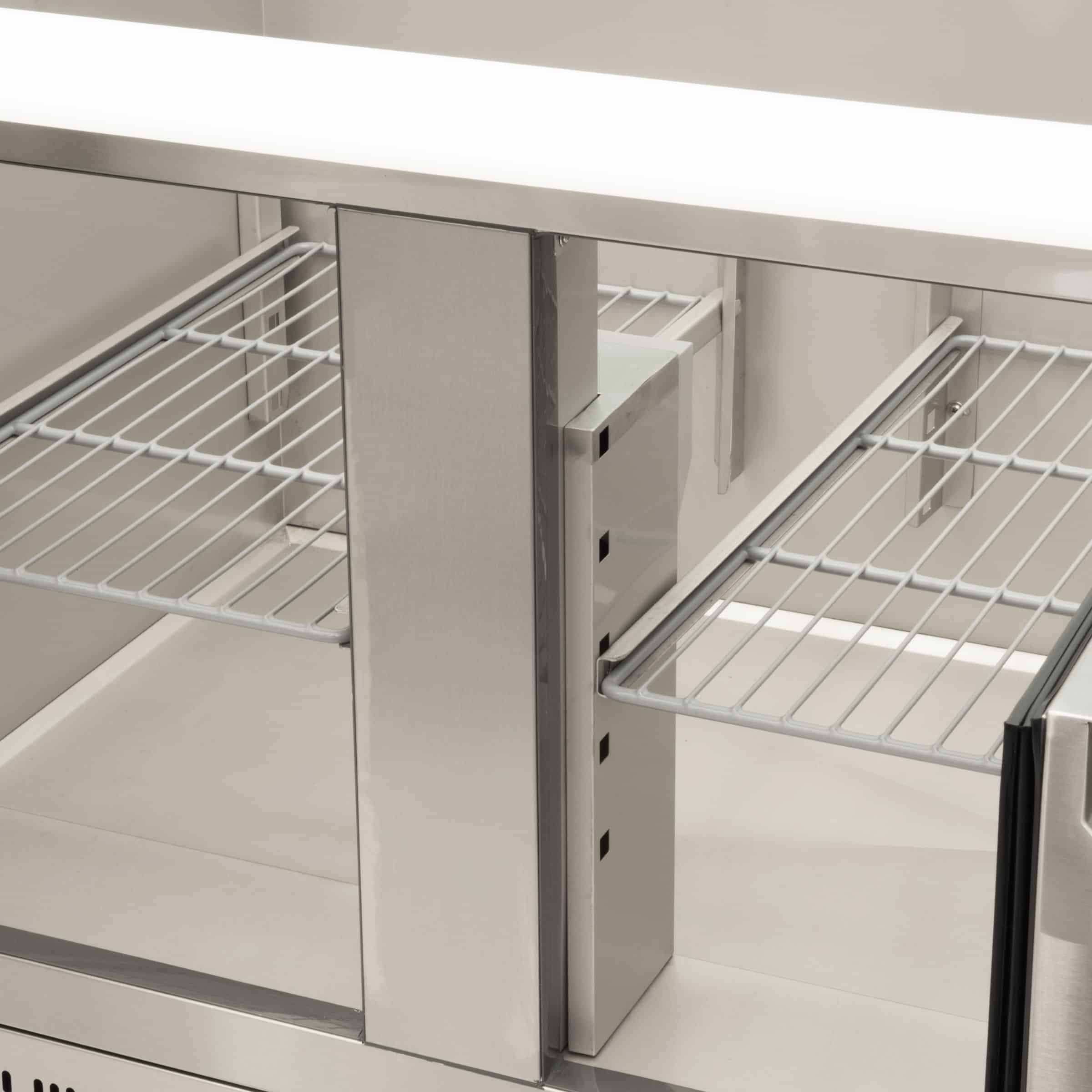 Pouvant accueillir des bacs gastronormes de 1/1, cet établi réfrigéré offre suffisamment d’espace de stockage pour tous vos ingrédients, sauces et vinaigrettes.
