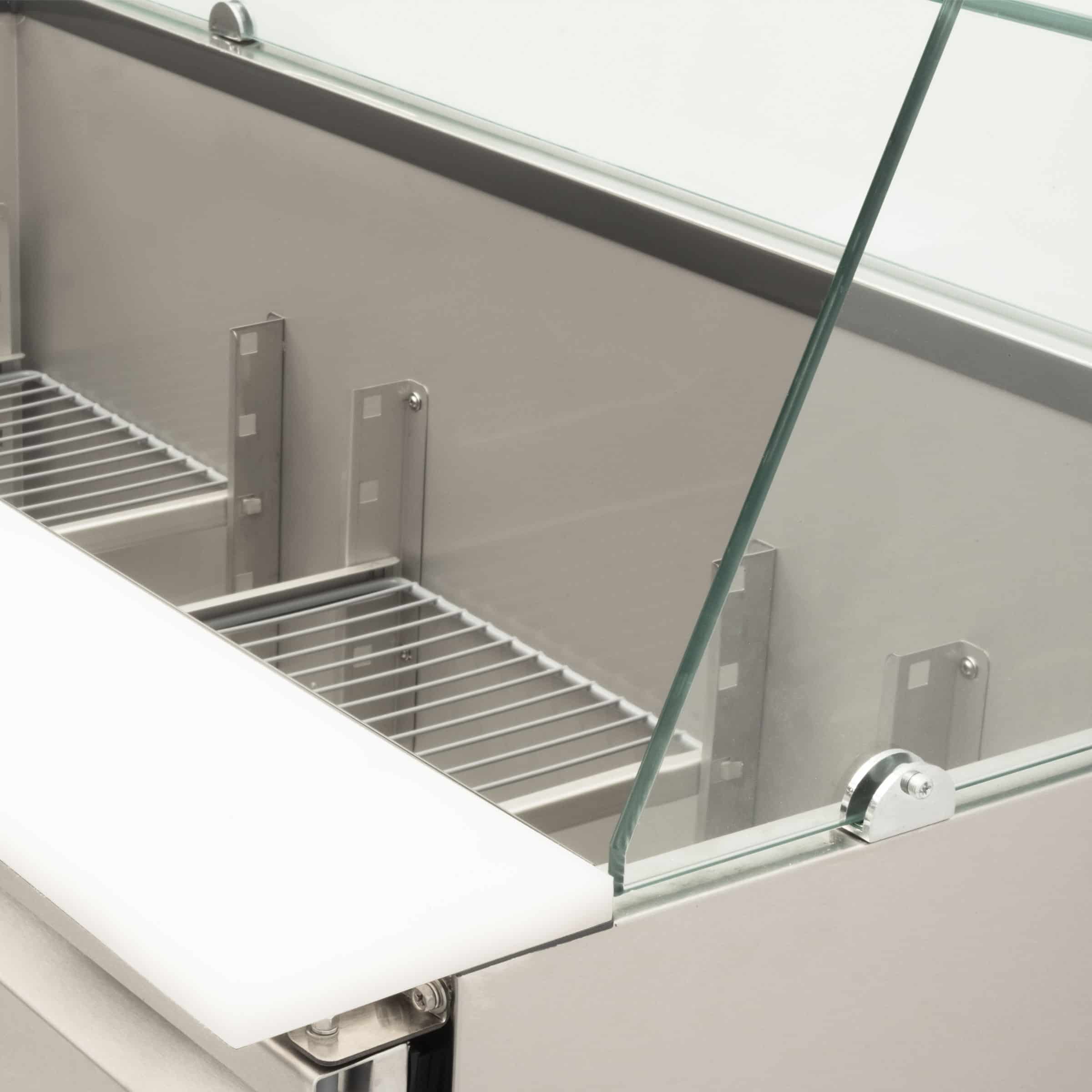 Le thermostat numérique assure un contrôle précis et constant de la température, ce qui vous garantit des ingrédients frais et des produits de haute qualité. En outre, la table de travail réfrigérée HCB Saladette est très conviviale et facile à nettoyer.