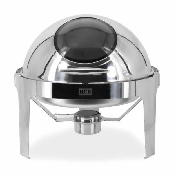 HCB Chafing dish rond – plateau roulant – 6 litres – hublot – acier inoxydable