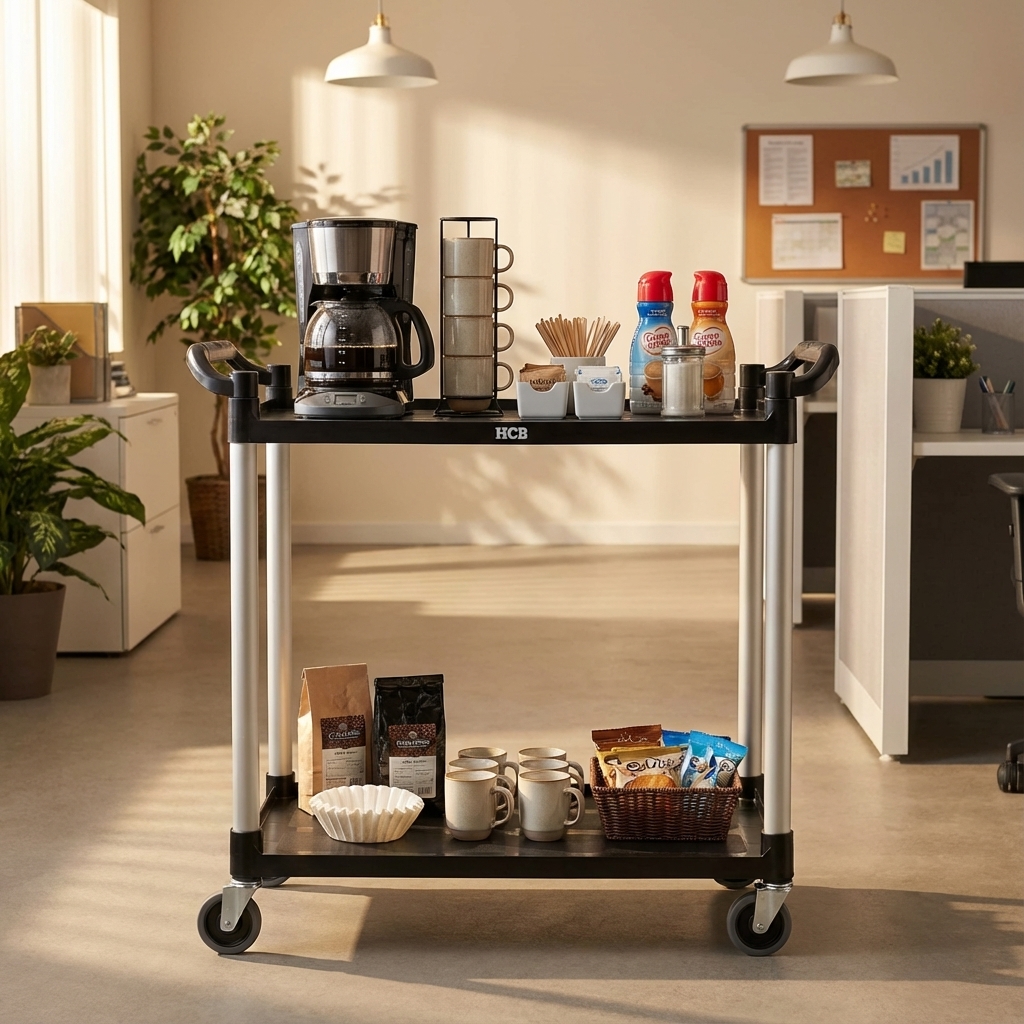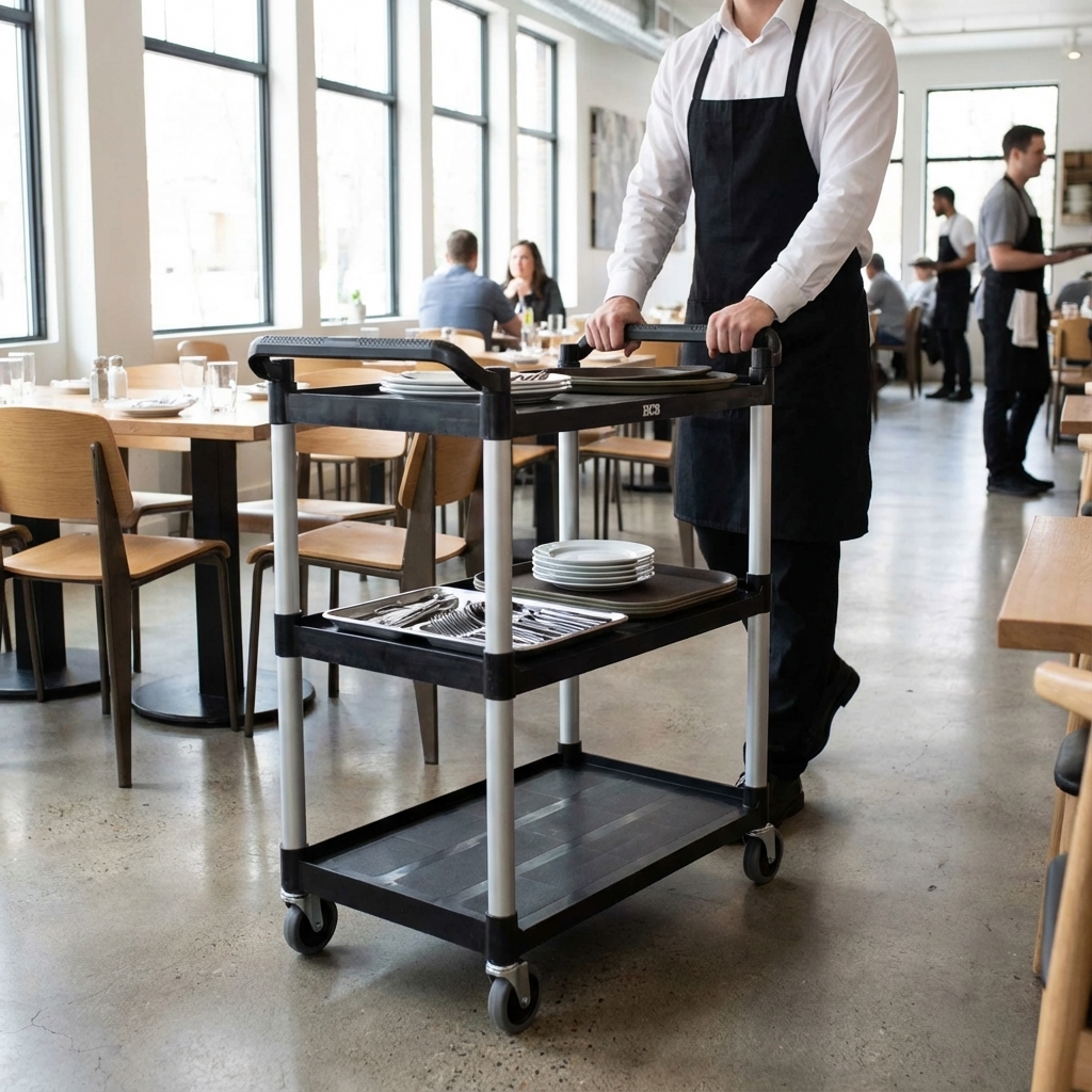 Le chariot de service est fabriqué en plastique de haute qualité, durable et facile à nettoyer. Le matériau résiste aux taches, aux bosses et aux rayures, ce qui confère au chariot un aspect professionnel même après une utilisation intensive. De plus, le plastique est léger, ce qui rend le chariot facile à manœuvrer, même lorsqu’il est entièrement chargé.
