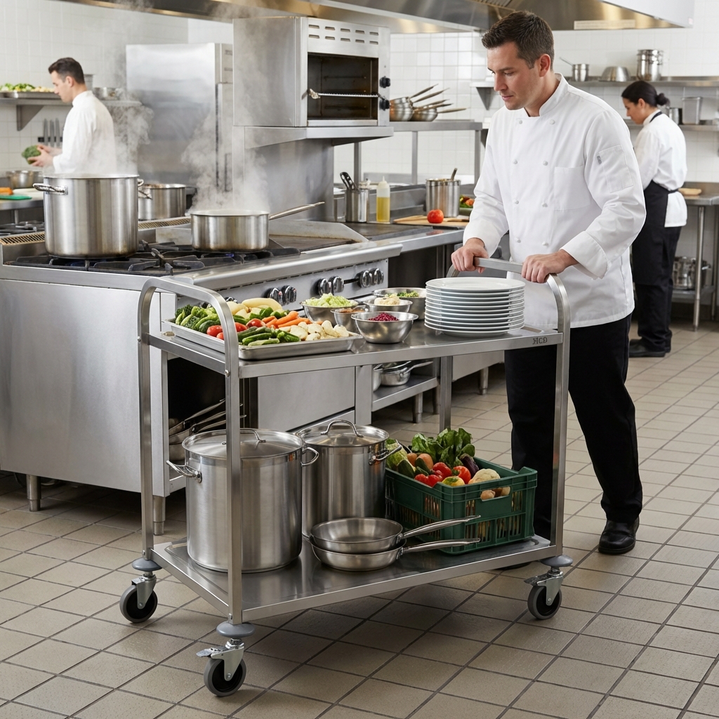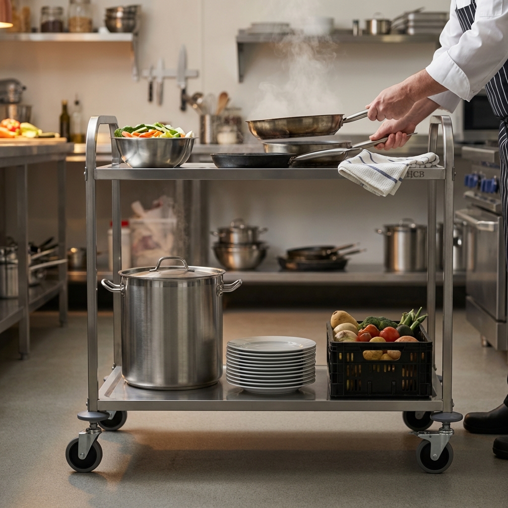 HCB Chariot de service – 2 étages – 95 cm – acier inoxydable