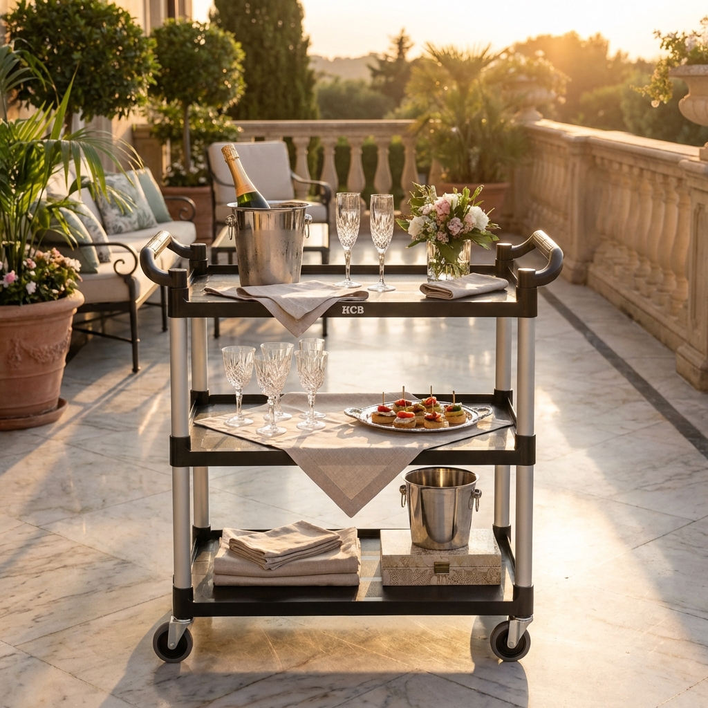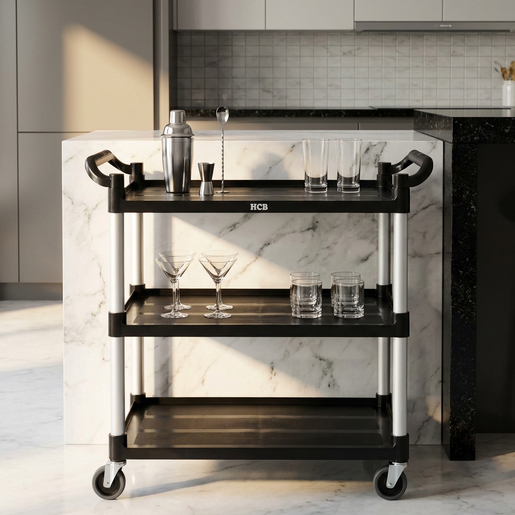 Le chariot de service est fabriqué en plastique de haute qualité, durable et facile à nettoyer. Le matériau résiste aux taches, aux bosses et aux rayures, ce qui confère au chariot un aspect professionnel même après une utilisation intensive. De plus, le plastique est léger, ce qui rend le chariot facile à manœuvrer, même lorsqu’il est entièrement chargé.