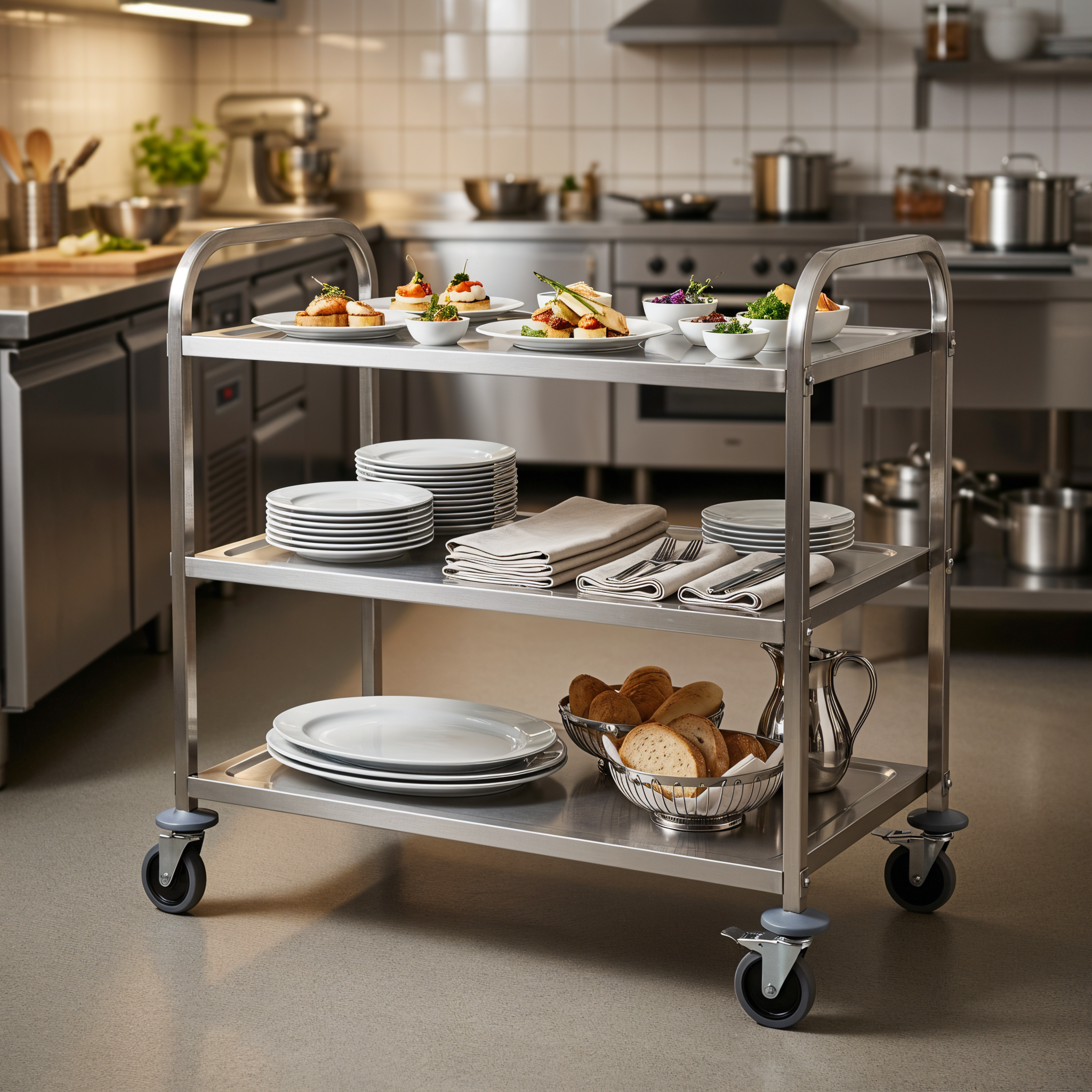 HCB Chariot de service – 3 étages – 95 cm – acier inoxydable