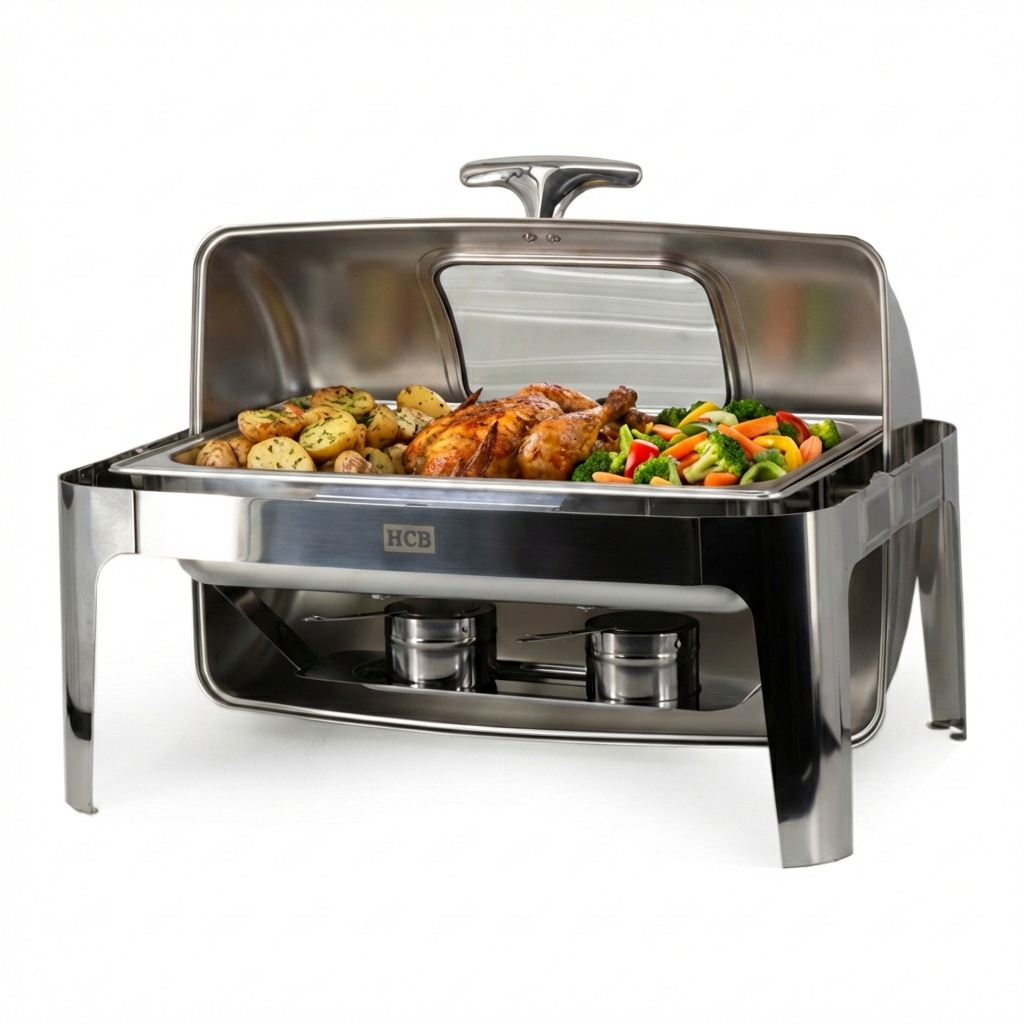 Le secteur de l’hôtellerie et de la restauration est synonyme de présentation, de commodité et de qualité supérieure. Grâce à cet élégant chafing dish avec couvercle à roulettes et hublot, vos plats sont non seulement parfaitement chauds, mais également présentés de manière attrayante. Grâce à la vitre pratique, les convives peuvent voir immédiatement ce qui est servi, sans avoir à ouvrir inutilement la vitre, ce qui permet d’économiser de la chaleur et du temps. Le couvercle à enroulement facilite le service, même aux heures de pointe. Cela garantit un service fluide et une présentation soignée lors de tout buffet, événement ou service de restauration.