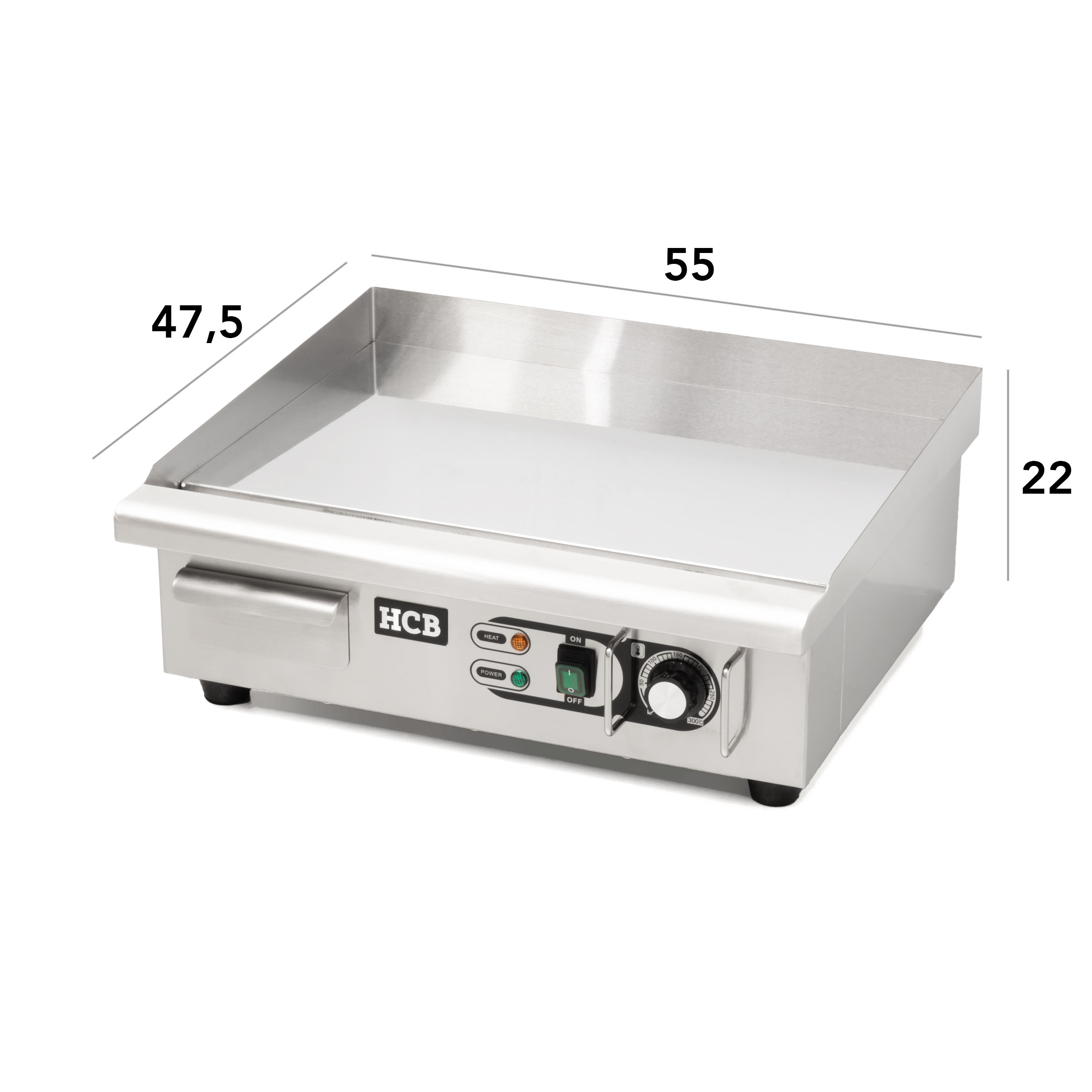 HCB Plaque de cuisson – lisse – chromée – 55 cm – 230V – inox