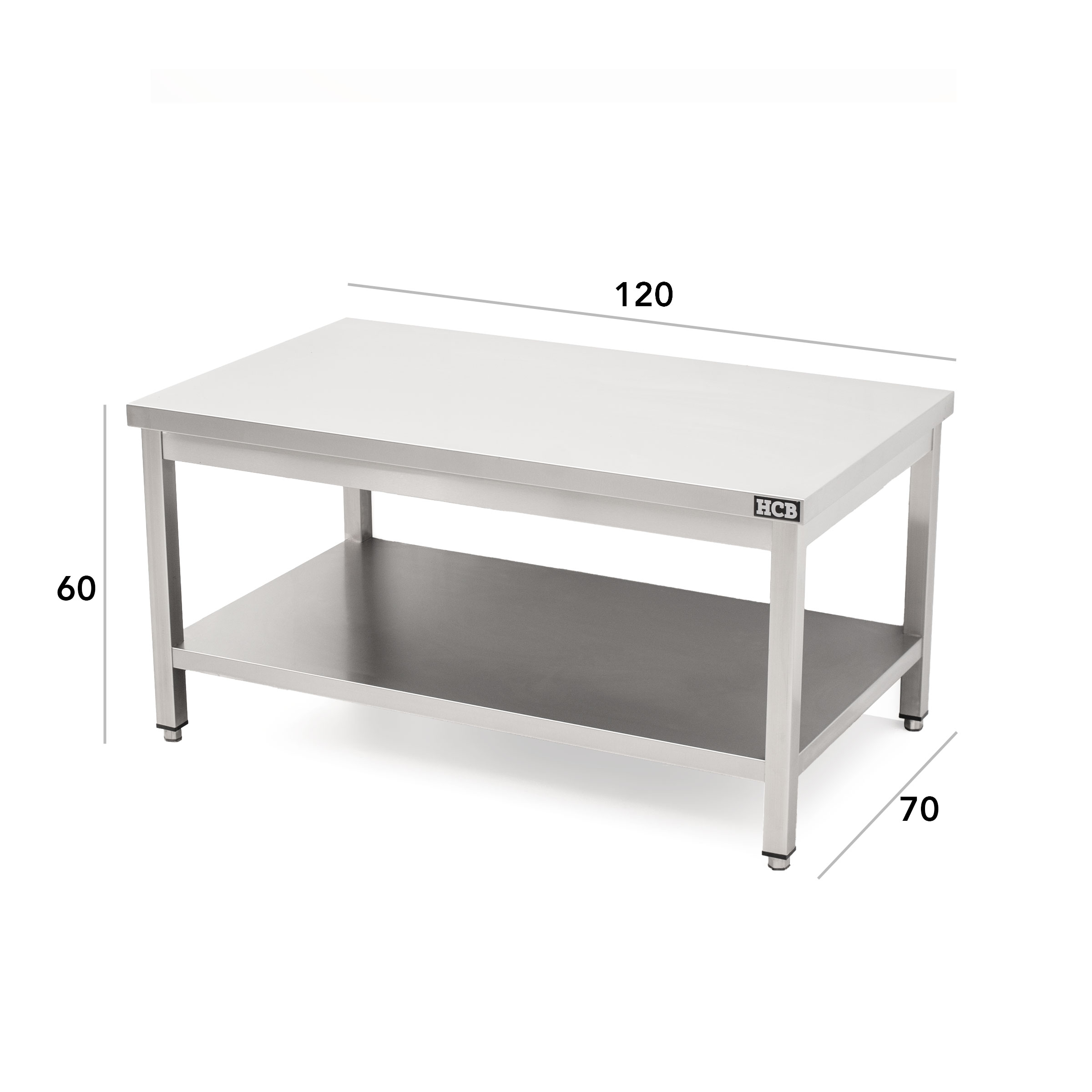 HCB Pro-line Table de travail – avec étagère inférieure – 120 x 70 x 60 cm – acier inoxydable