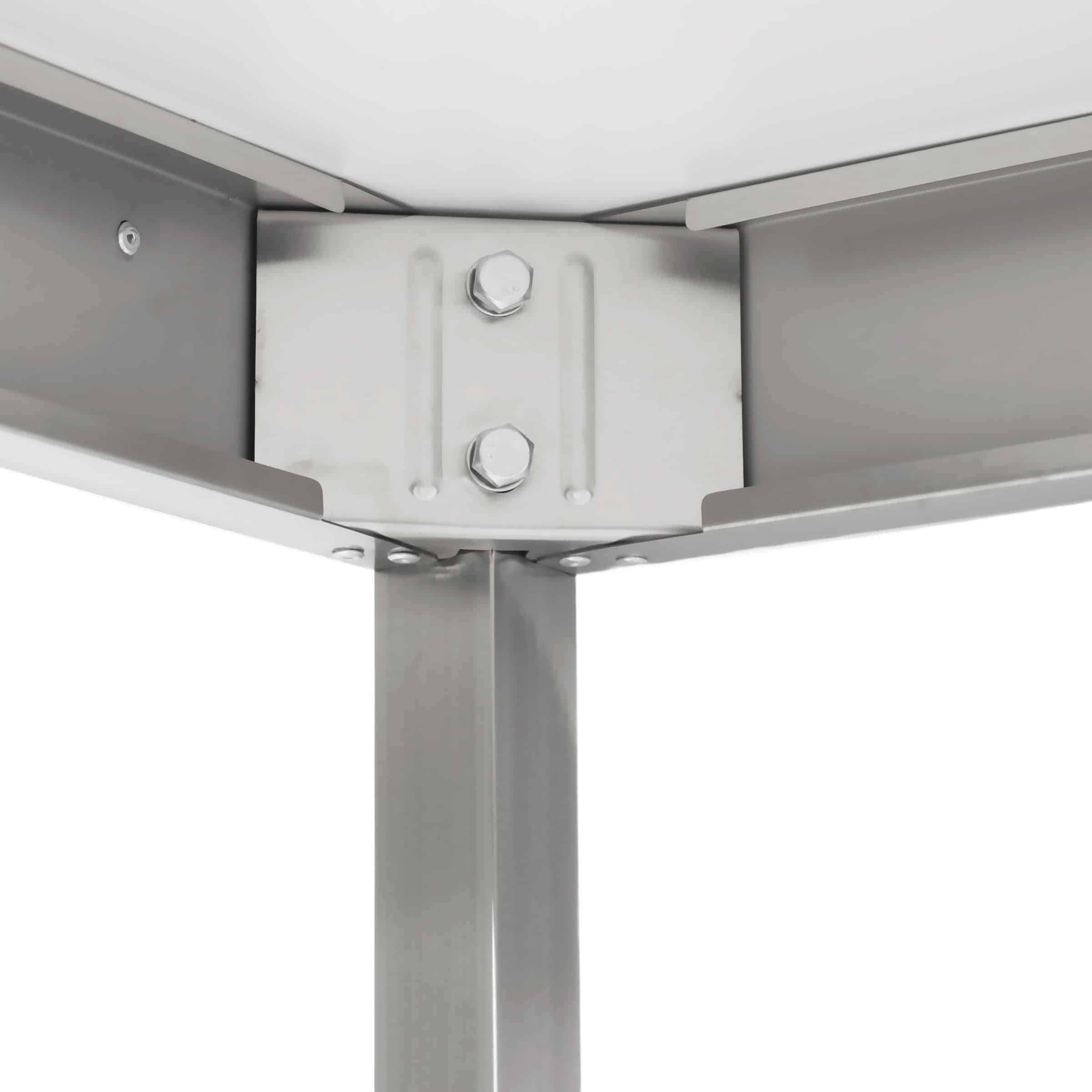 En plus d’être pratique, la table de travail présente des bords polis et des pieds réglables en hauteur pour que votre personnel puisse travailler en toute sécurité et de manière ergonomique. La table est livrée en paquet plat et se monte facilement et rapidement à l’aide des outils fournis.