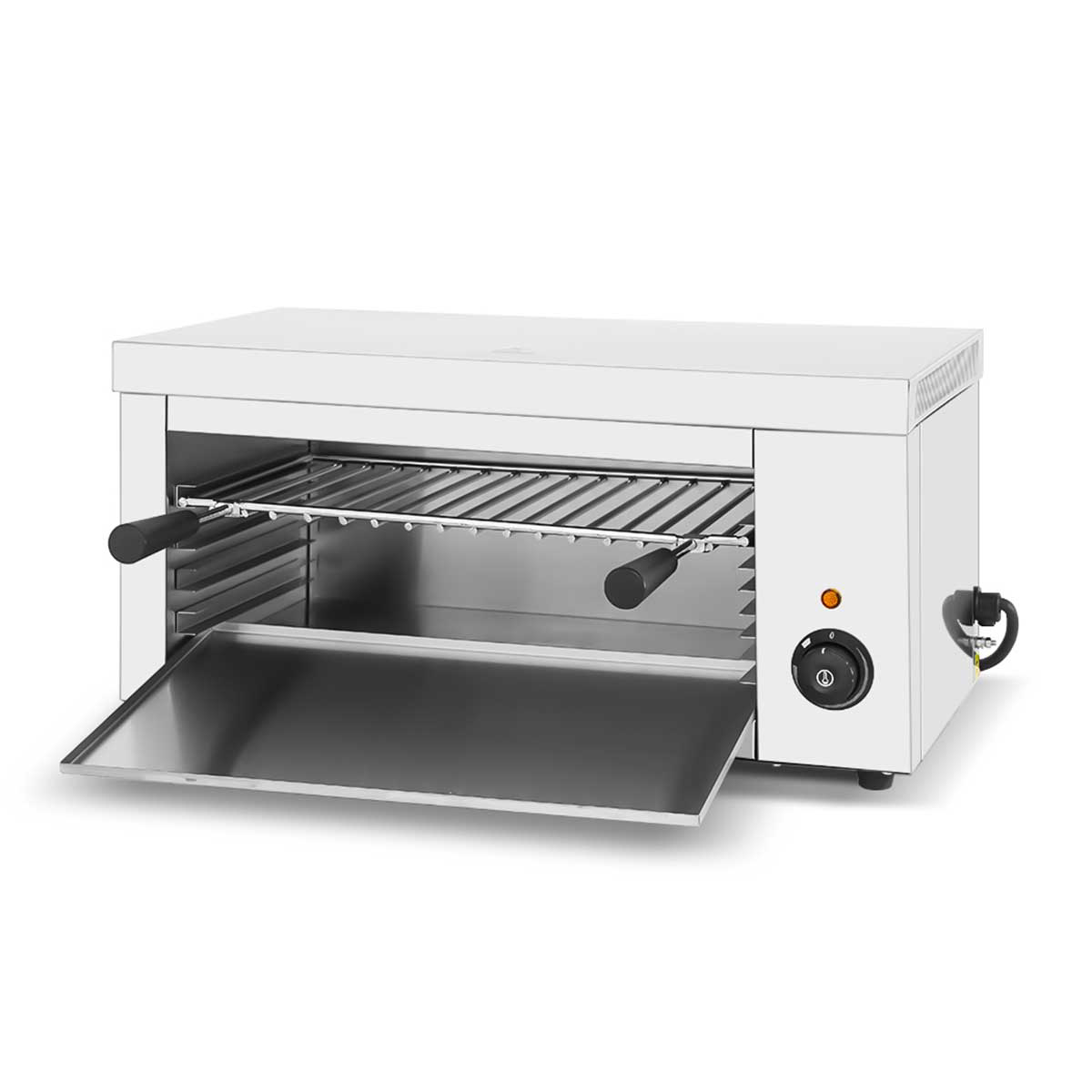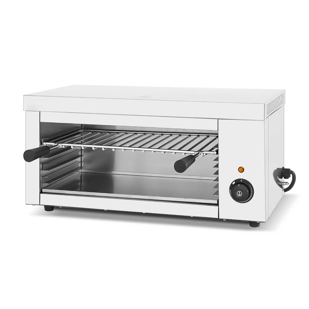 Grâce à sa construction en acier inoxydable, le gril salamandre est durable et facile à nettoyer. Le gril dispose d’une connexion de 230 volts et peut donc être facilement raccordé.