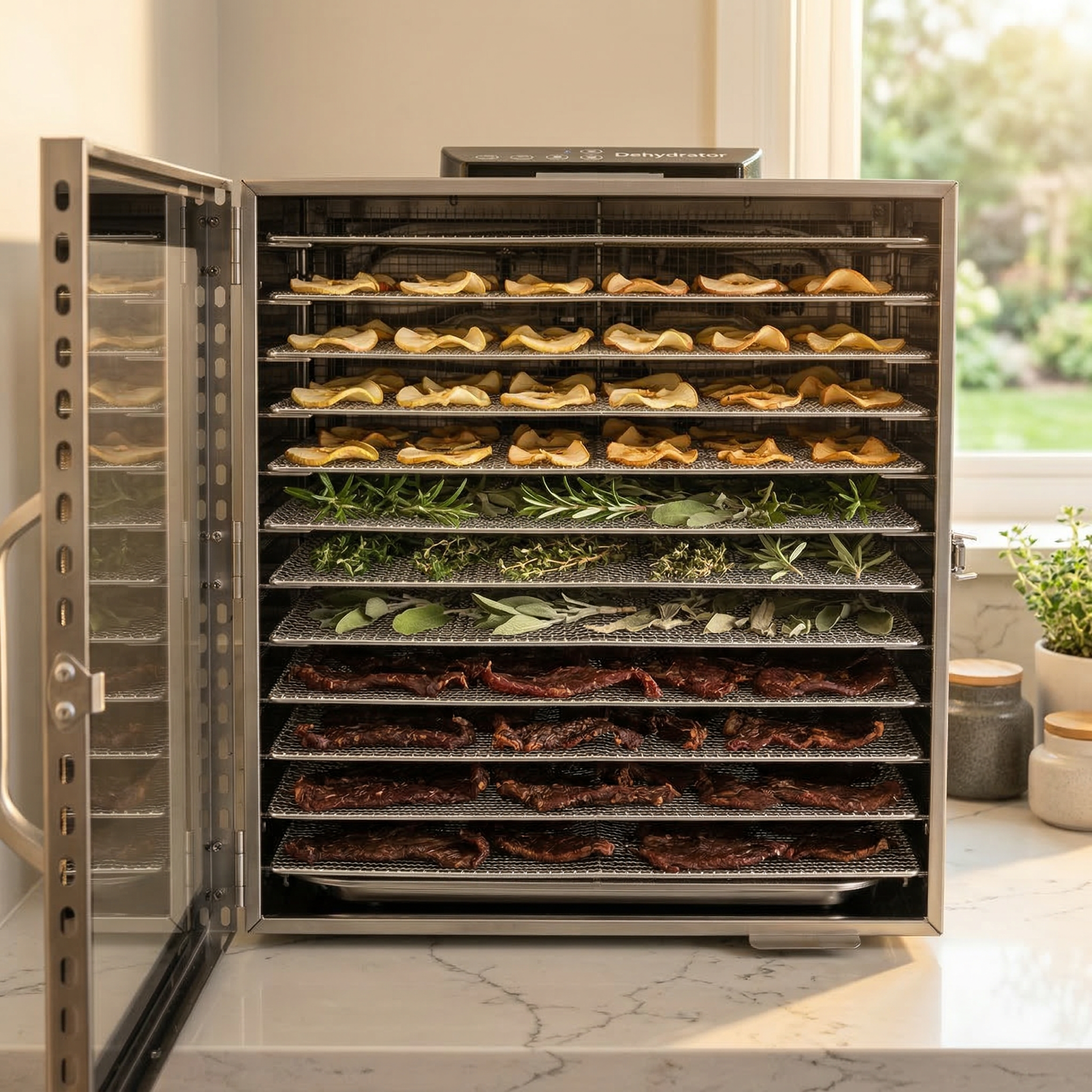 Avec notre déshydrateur alimentaire, vous pouvez facilement et efficacement sécher et conserver les aliments, en préservant leur saveur et leurs nutriments tout en prolongeant leur durée de conservation. Le processus de séchage élimine l’excès d’humidité des aliments, ce qui empêche la croissance bactérienne et prévient la détérioration. Vous pouvez ainsi savourer plus longtemps vos fruits, légumes, herbes, viandes, poissons et autres produits de saison préférés.