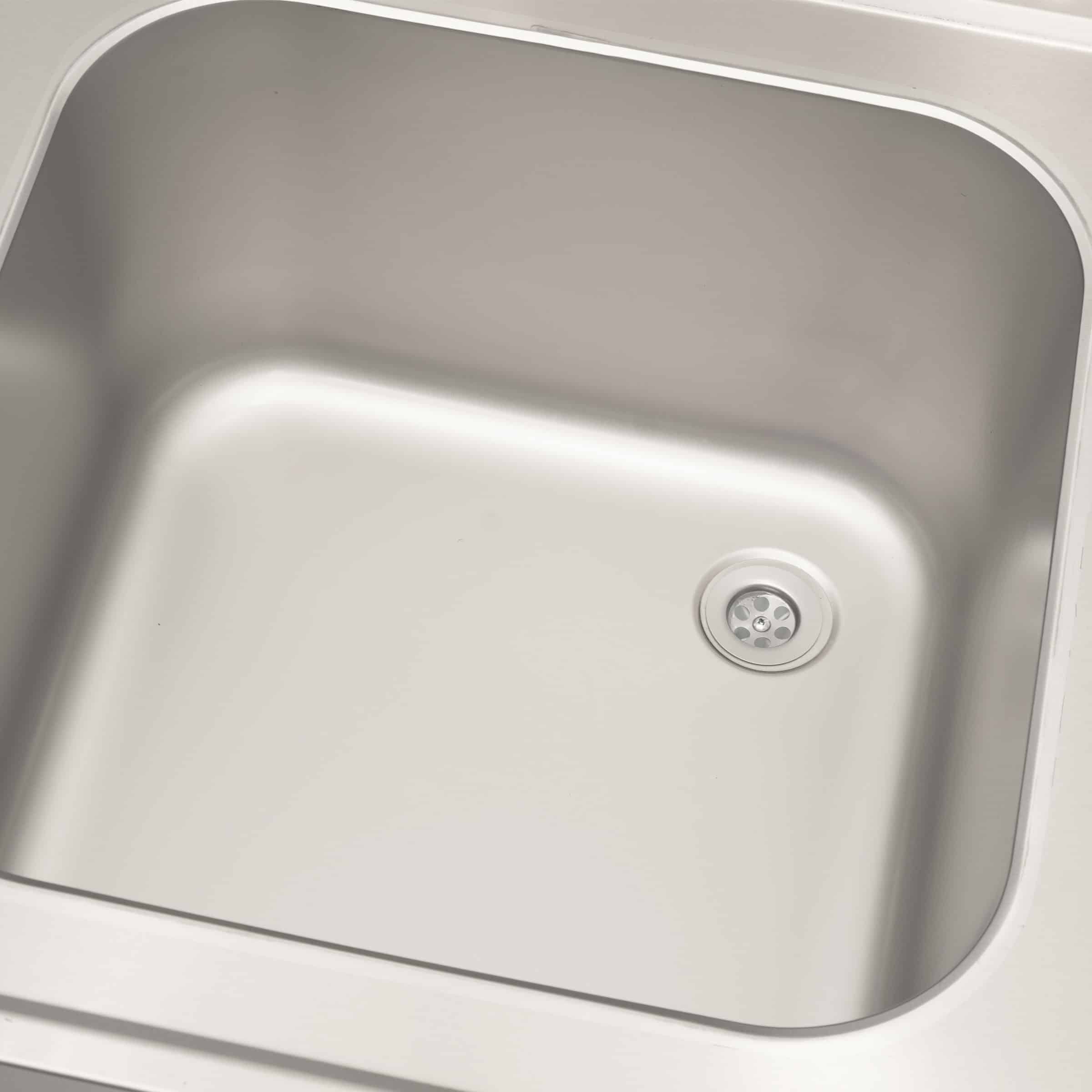 La table de rinçage a des bords magnifiquement polis, une barrière d’eau surélevée et des pieds réglables en hauteur pour que votre personnel puisse travailler en toute sécurité et de manière ergonomique. La table de rinçage est livrée entièrement assemblée et peut donc être installée immédiatement !