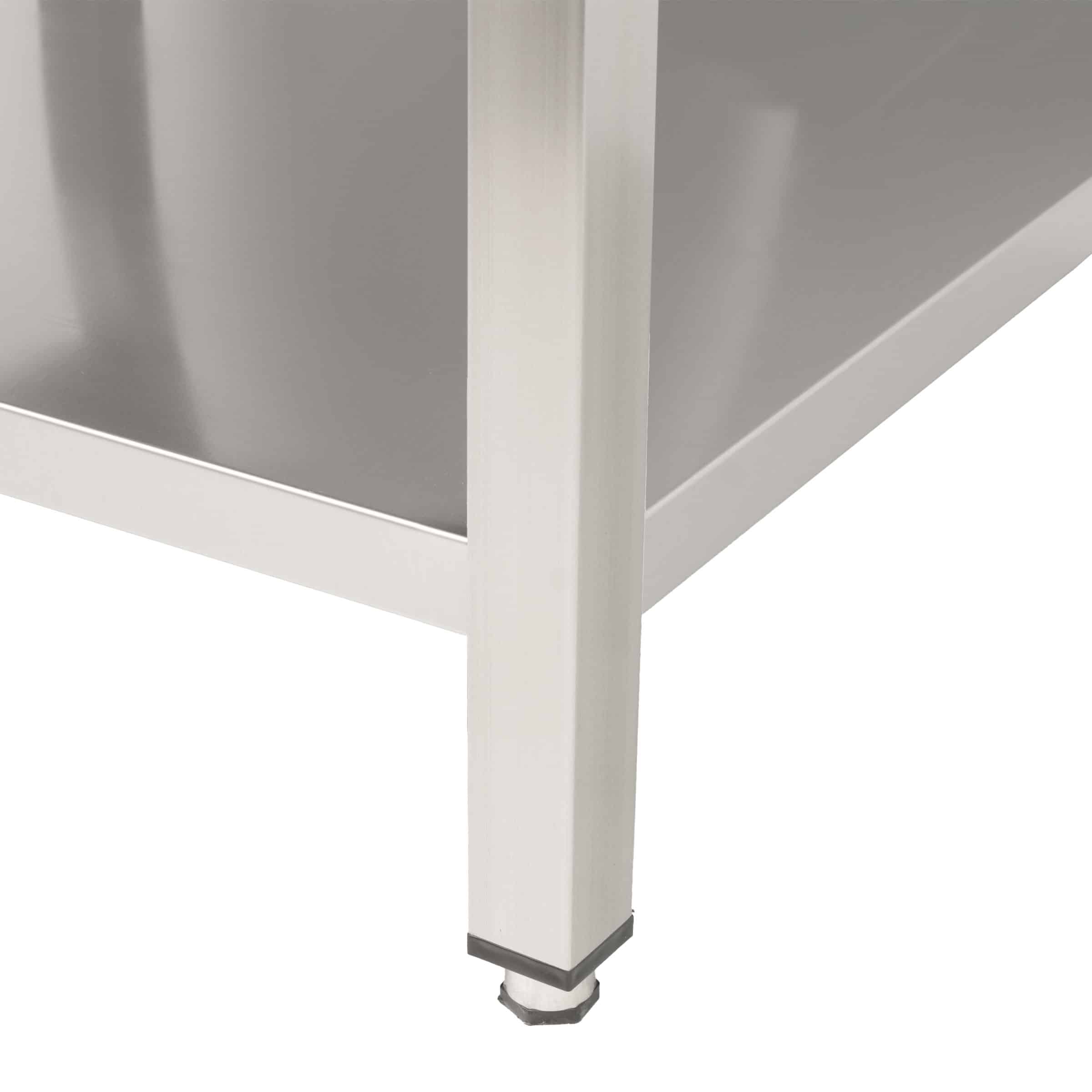 Pour travailler en toute sécurité, de manière optimale et efficace dans votre cuisine professionnelle, les tables d’évier en acier inoxydable sont d’une grande importance. Dotée d’un solide plateau en acier inoxydable, de pieds robustes et de coins bien finis, cette table d’évier de la marque HCB est donc le choix idéal ! Cet évier dispose d’un espace de rangement pratique sous l’évier. La table est fabriquée en acier inoxydable robuste et convient donc parfaitement à une utilisation dans une cuisine professionnelle.