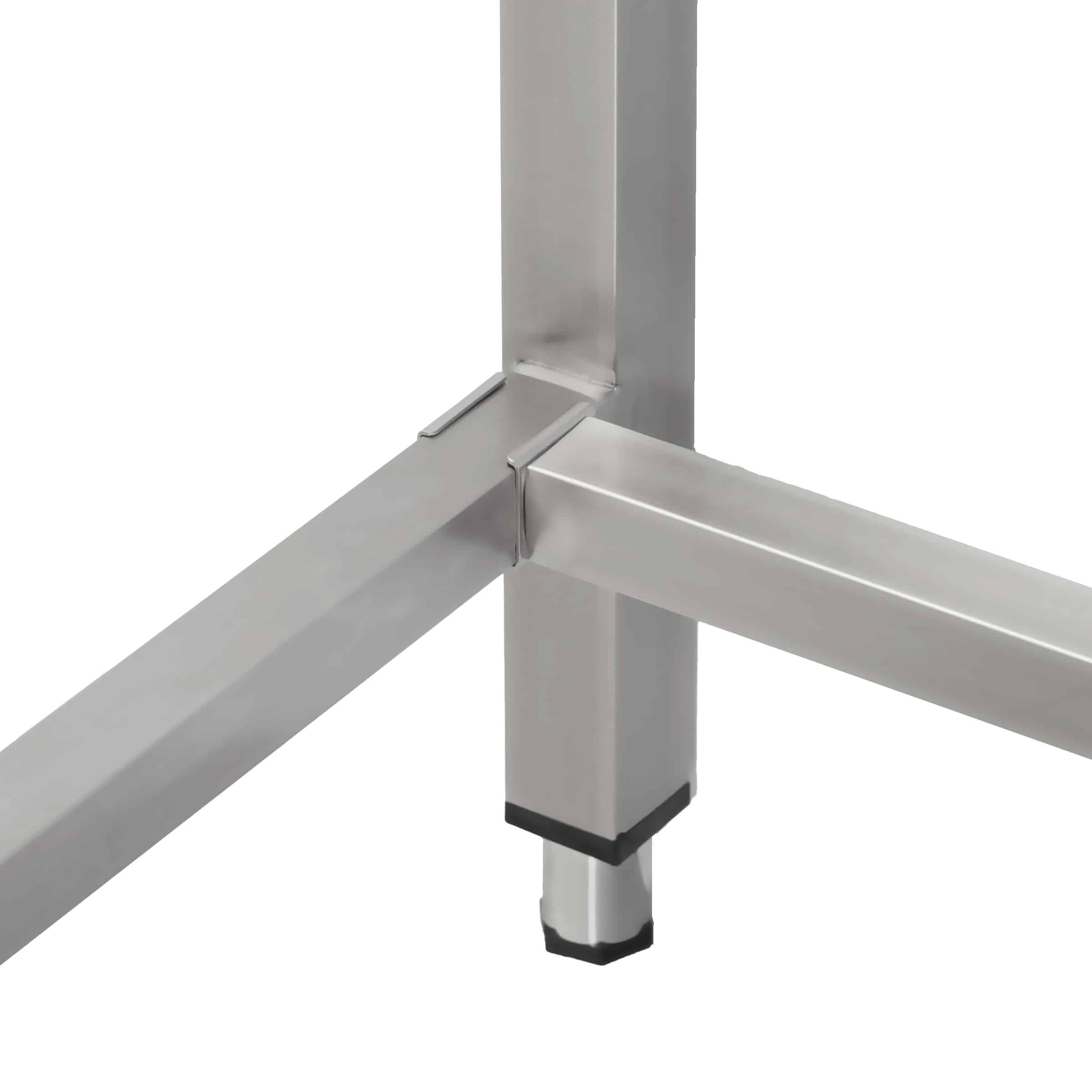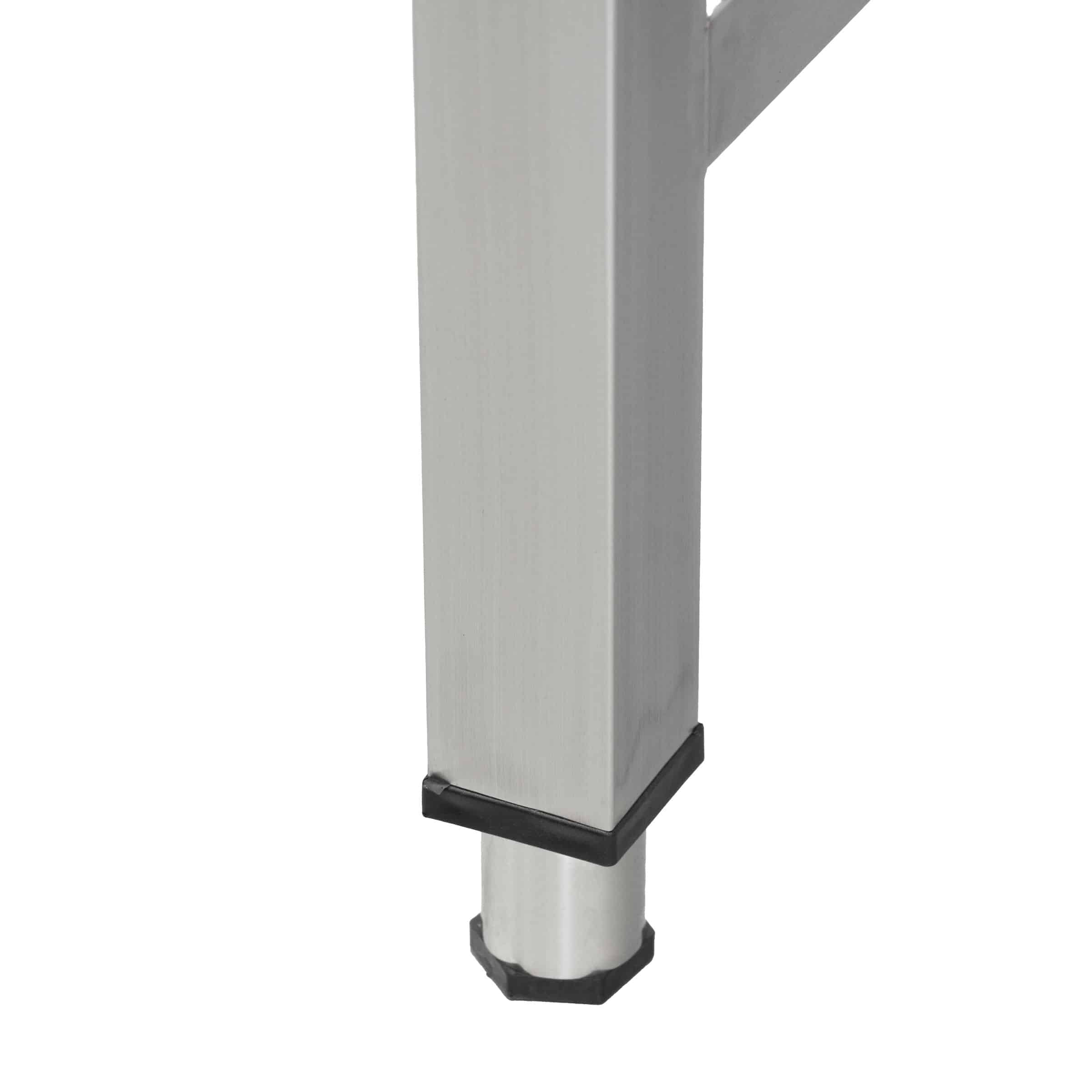 La table de travail a des bords magnifiquement polis et des pieds réglables en hauteur pour que votre personnel puisse travailler en toute sécurité et de manière ergonomique. La table est livrée en paquet plat et se monte facilement et rapidement à l’aide des outils fournis.